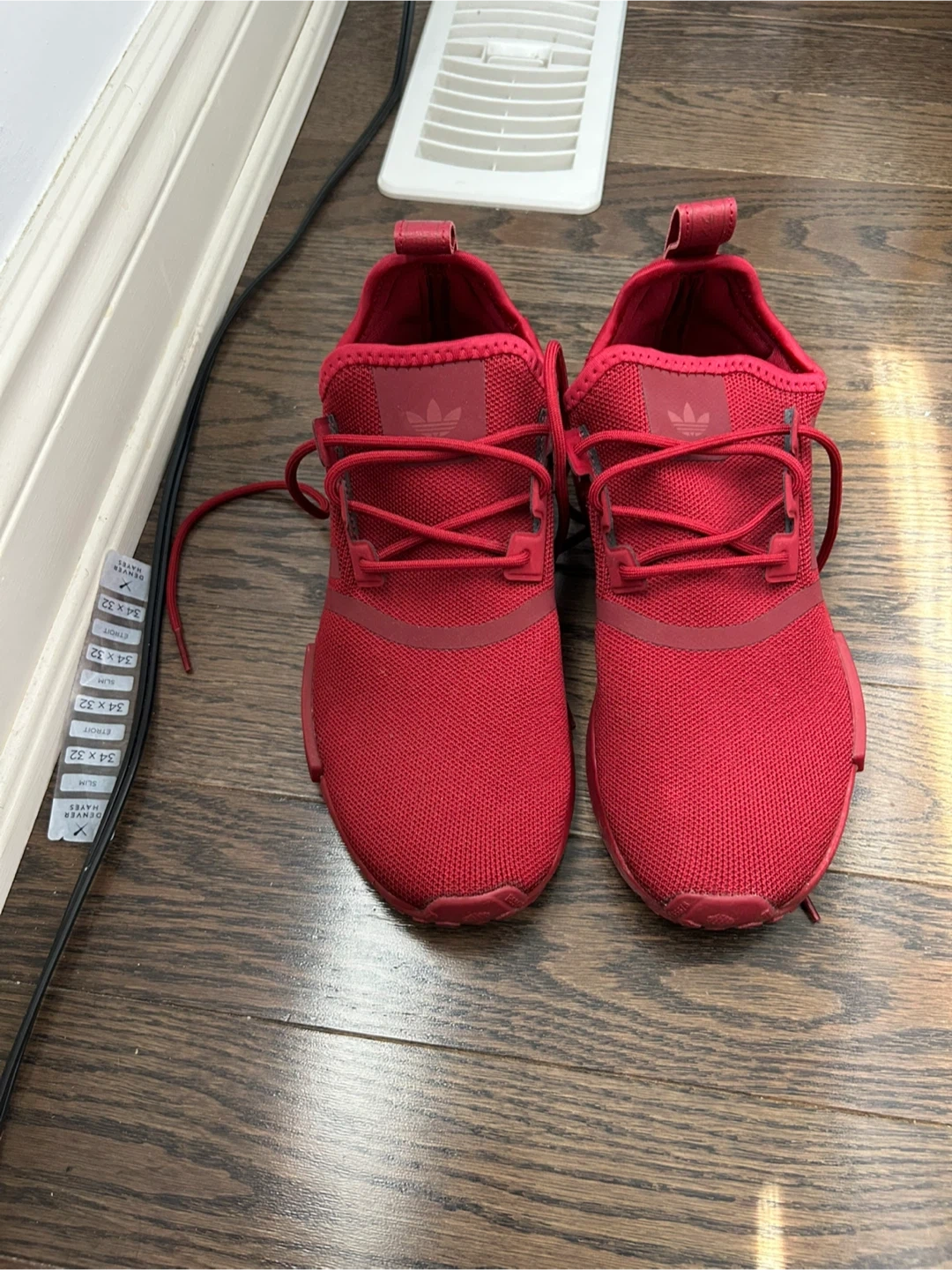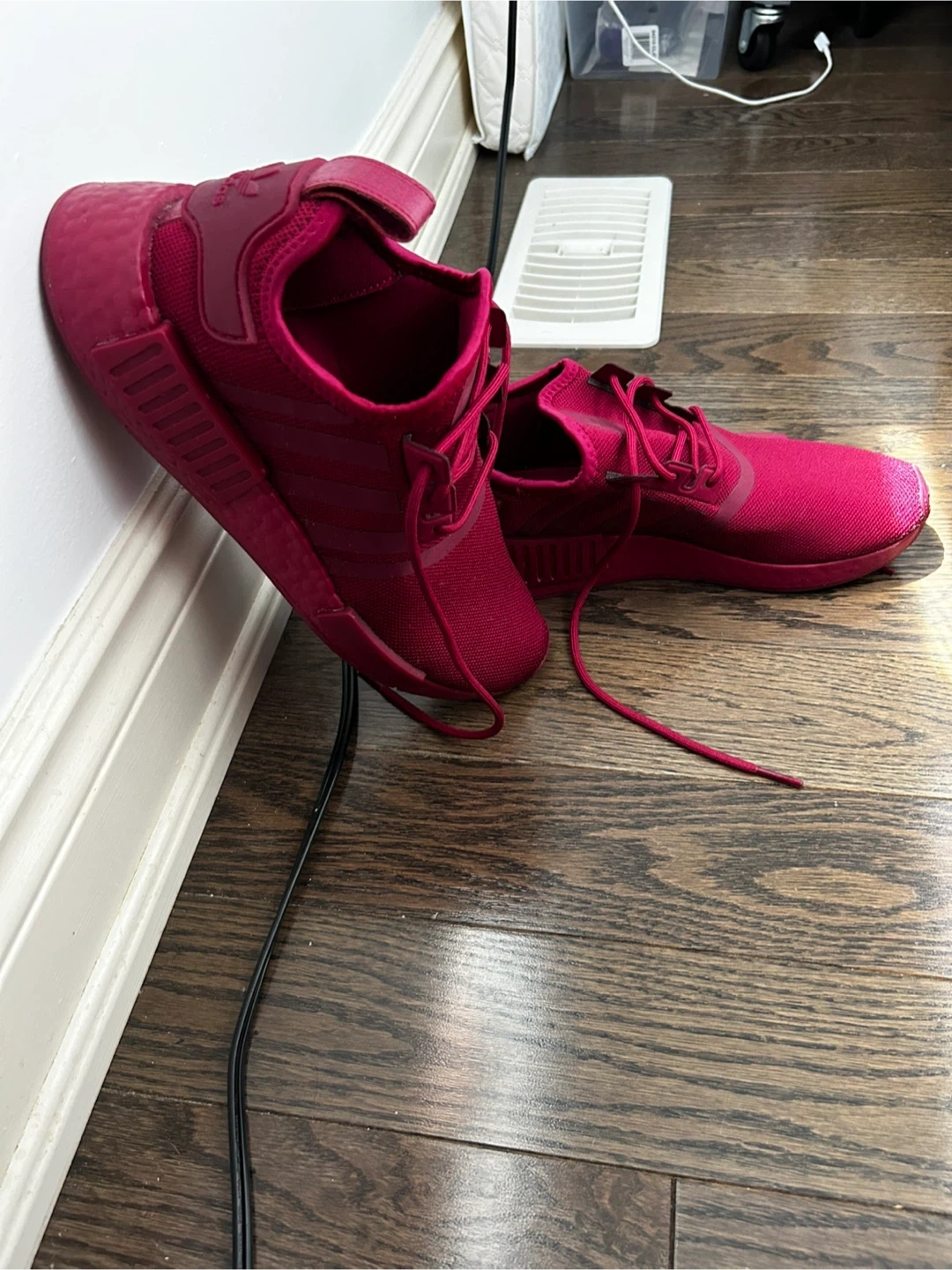 Selling a pair of Adidas NMD_R1 sneakers in a lovely maroon colour. They're in great condition and ready for a new owner! These shoes are perfect for everyday wear and offer a stylish look with Adidas comfort.