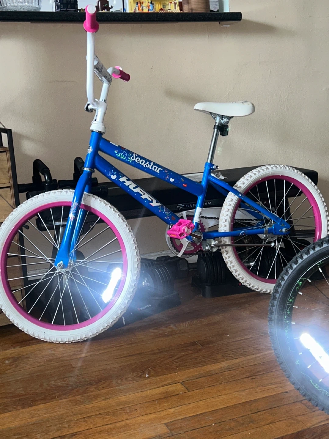 Selling a Huffy Seastar girls' bike. It is blue with white tires and pink pedals. Great for a young rider! Great condition used twice.