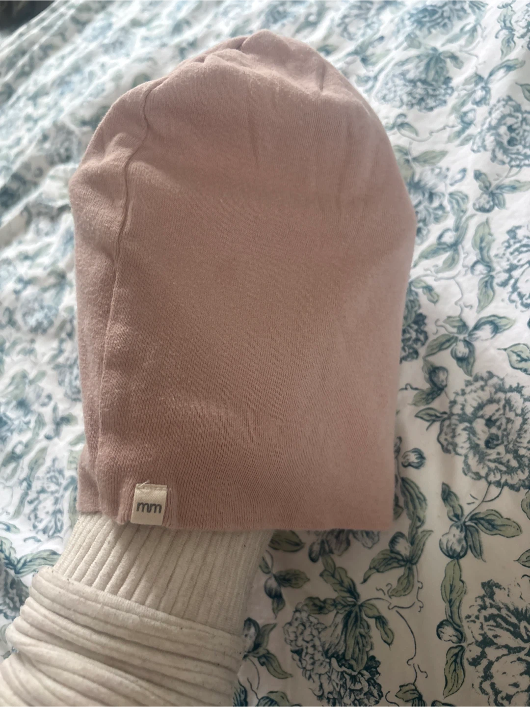 Mini Mioche beanie made of 100% organic cotton. In a pretty blush colour to keep your baby or young toddler warm for the rest of winter.