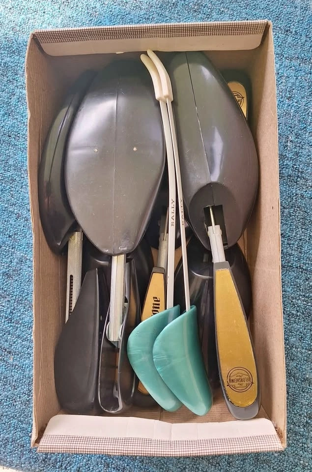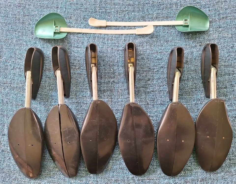 Selling 4 pairs of plastic shoe inserts / stretchers. 1 of the Florsheims is missing the gold foil cover otherwise all are in good vintage condition. Were used in size 8 & 9 men's dress shoes to hold shape.