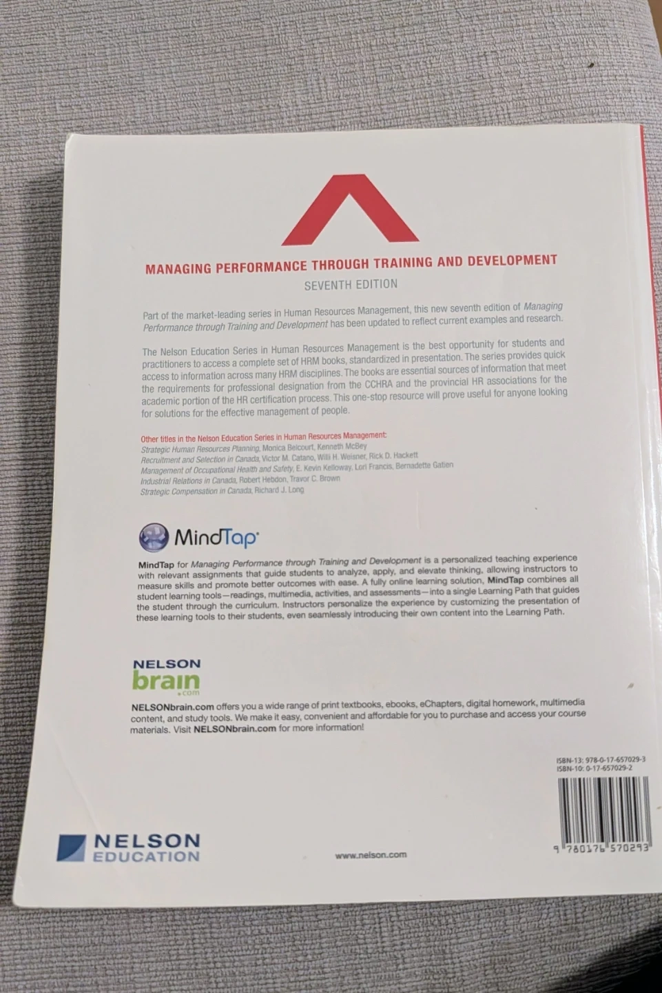 Selling "Managing Performance Through Training and Development," seventh edition, part of the Nelson Education Series in Human Resources Management