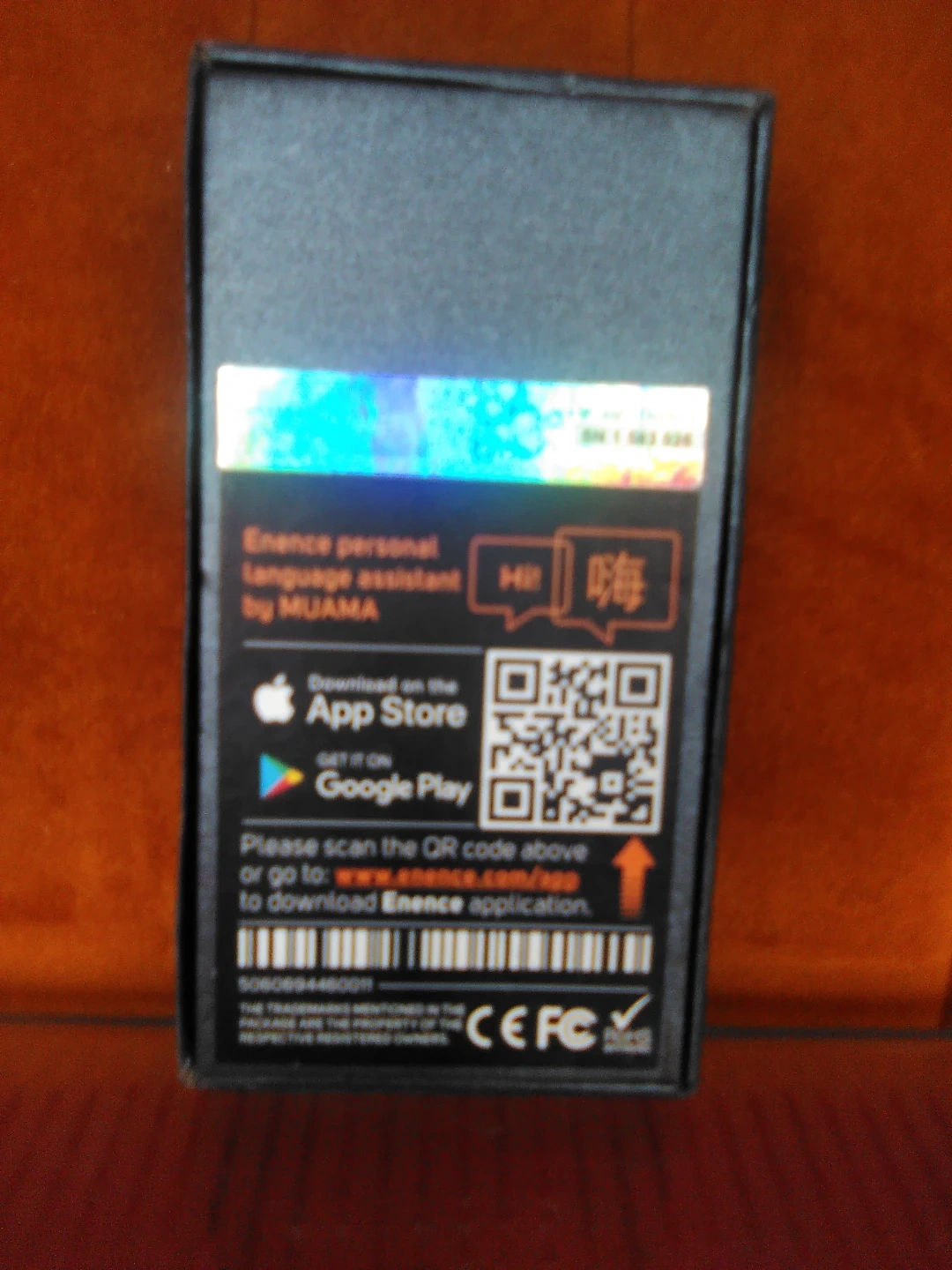 Selling an Enence personal language assistant by MUAMA. It comes with its original box and included components. Scan the QR code to download the Enence application!