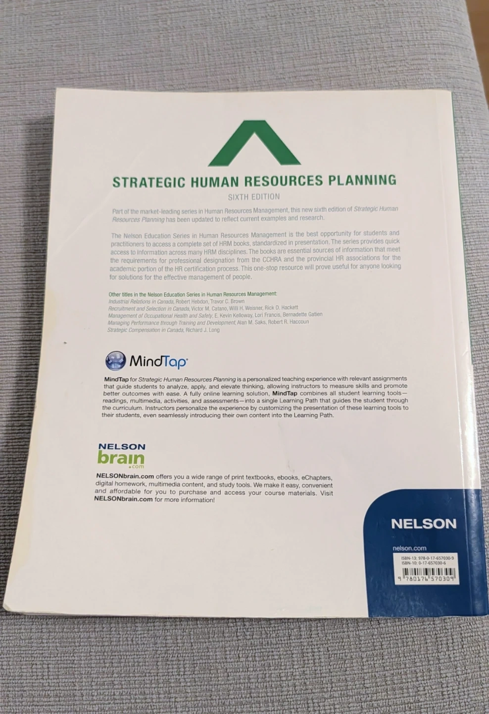 Selling a copy of Strategic Human Resources Planning, Sixth Edition, by Belcourt and McBey. This book is part of the Nelson Education Series in Human Resources Management and offers a personalized teaching experience with relevant assignments and study tools. Perfect for anyone looking for solutions in the effective management of people