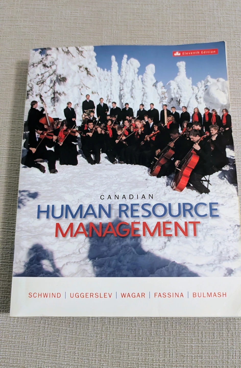 Selling a copy of "Canadian Human Resource Management" by Schwind, Uggerslev, Wagar, Fassina, and Bulmash. It's the eleventh edition and is in good condition. Perfect for students or anyone interested in learning about human resources in a Canadian context
