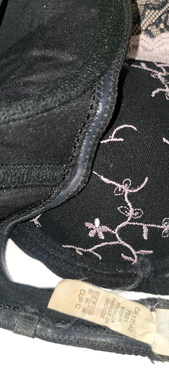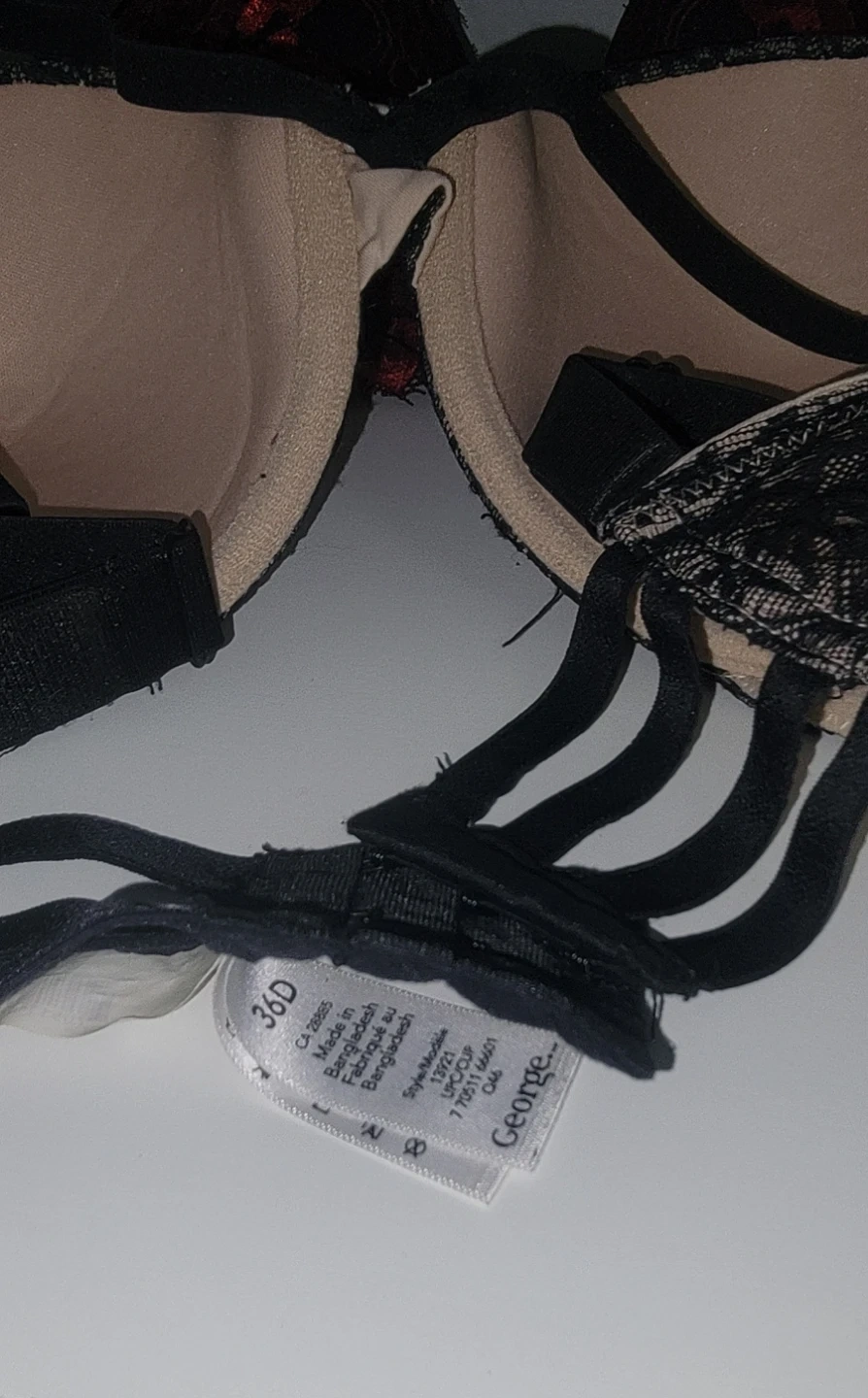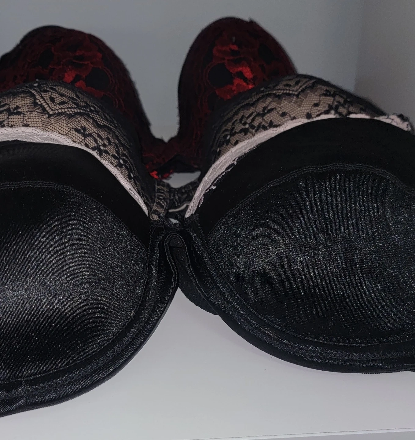 some used bras in size 34D 36D! There's a black lace bra and a red and black lace bra. Both are in good condition and ready for a new home! 36C is strapless