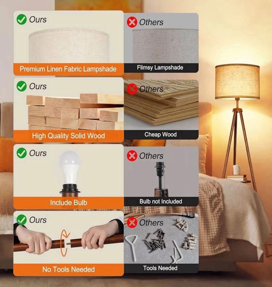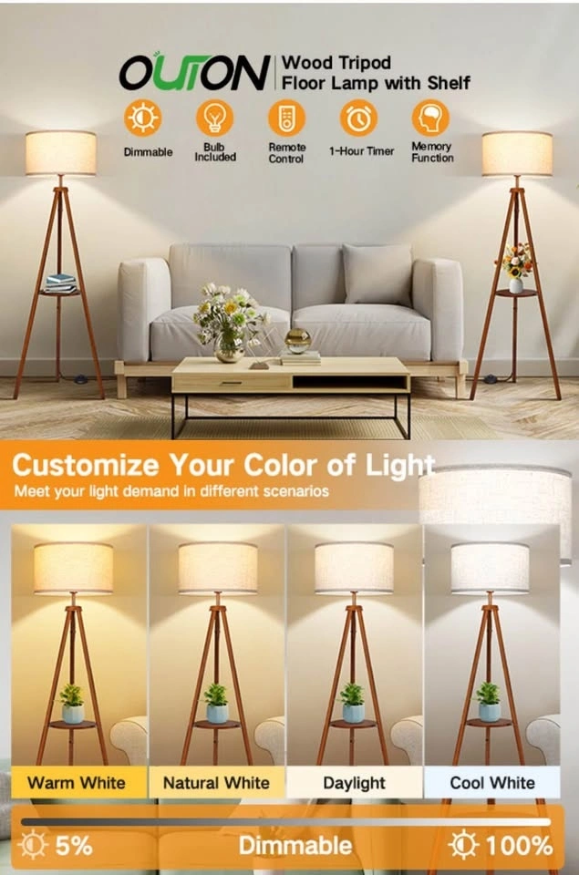 OUTON Tripod Floor Lamp Wood Floor Lamp Standing Tall Lamp - Walnut