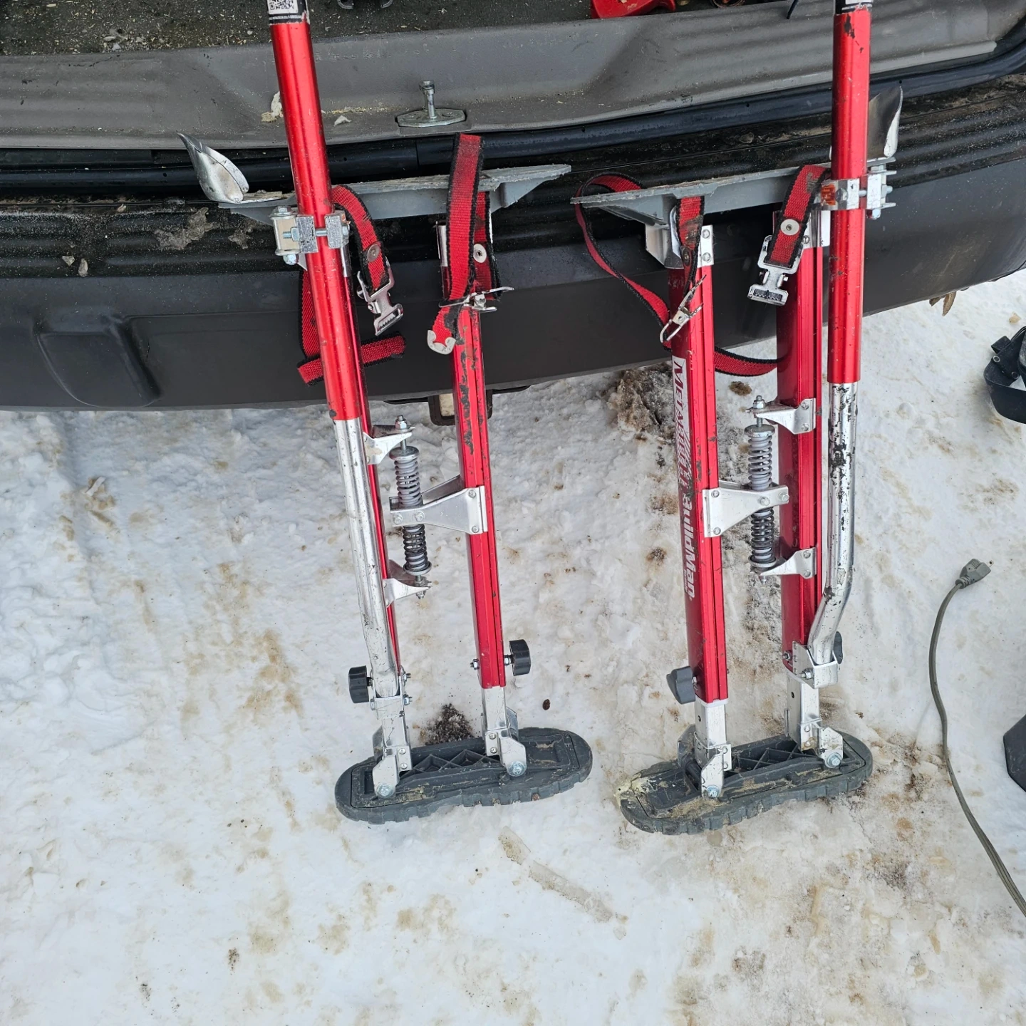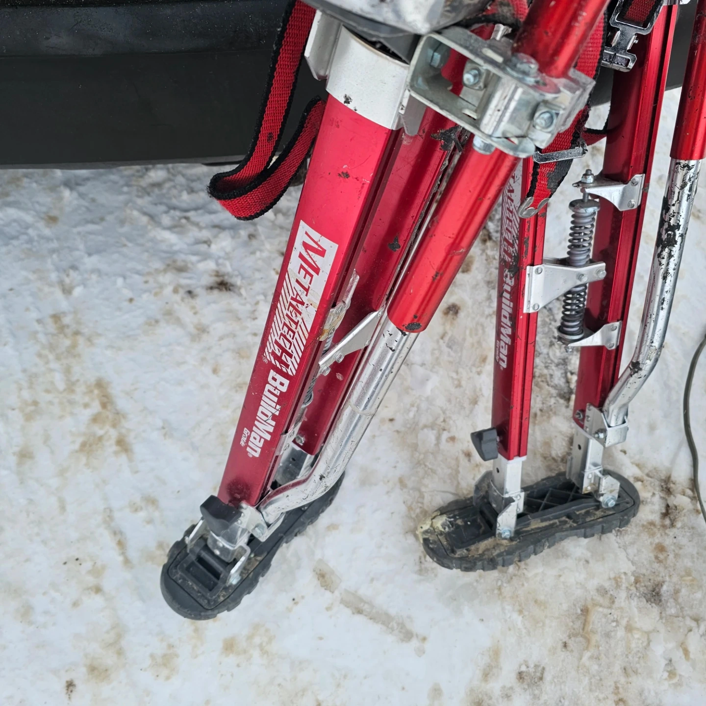 Selling a pair of MetaTech Buildman stilts. They're red and silver, and appear to be in good condition! Great for painting or other jobs where you need a little extra height