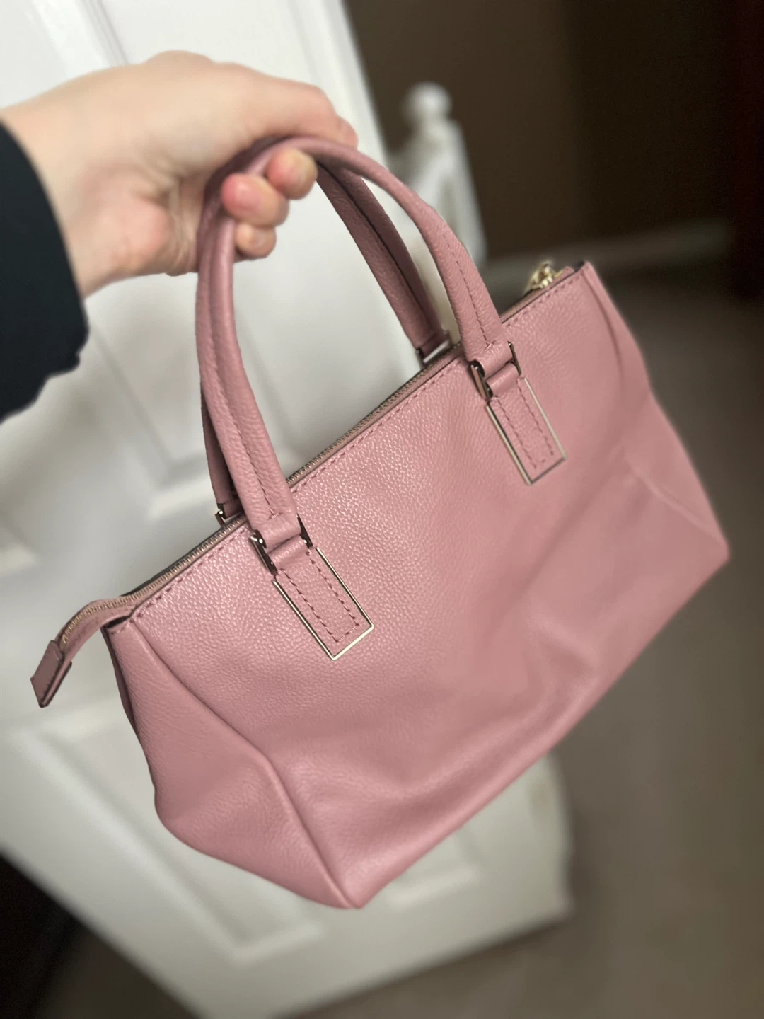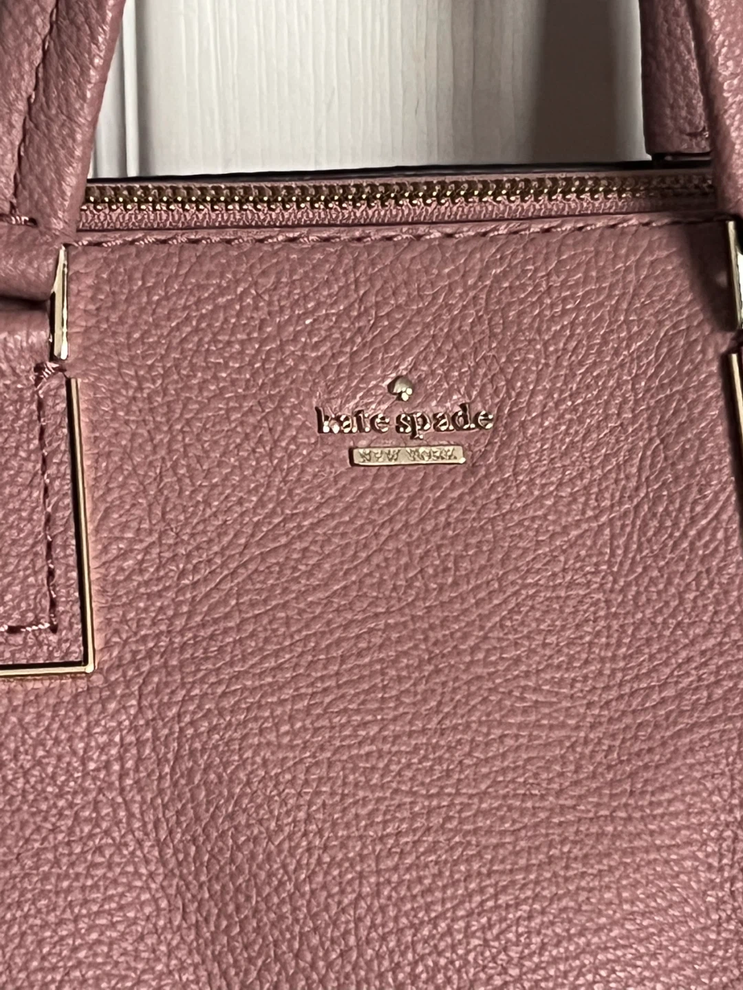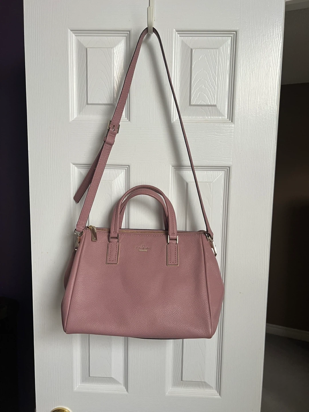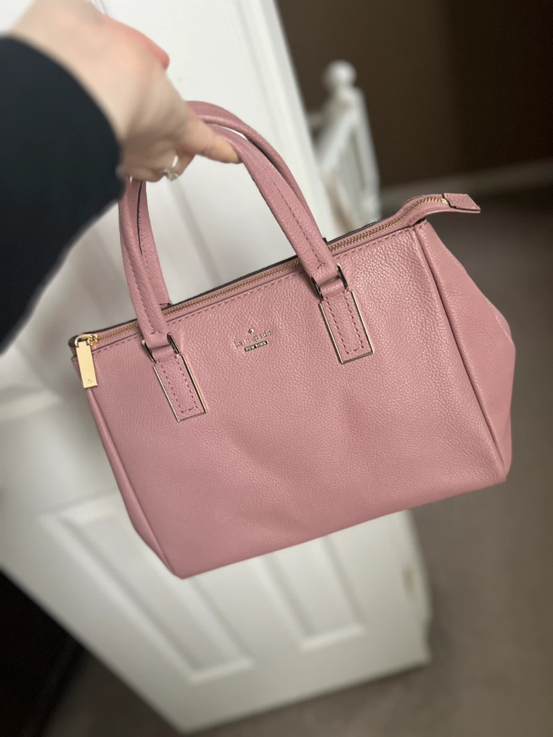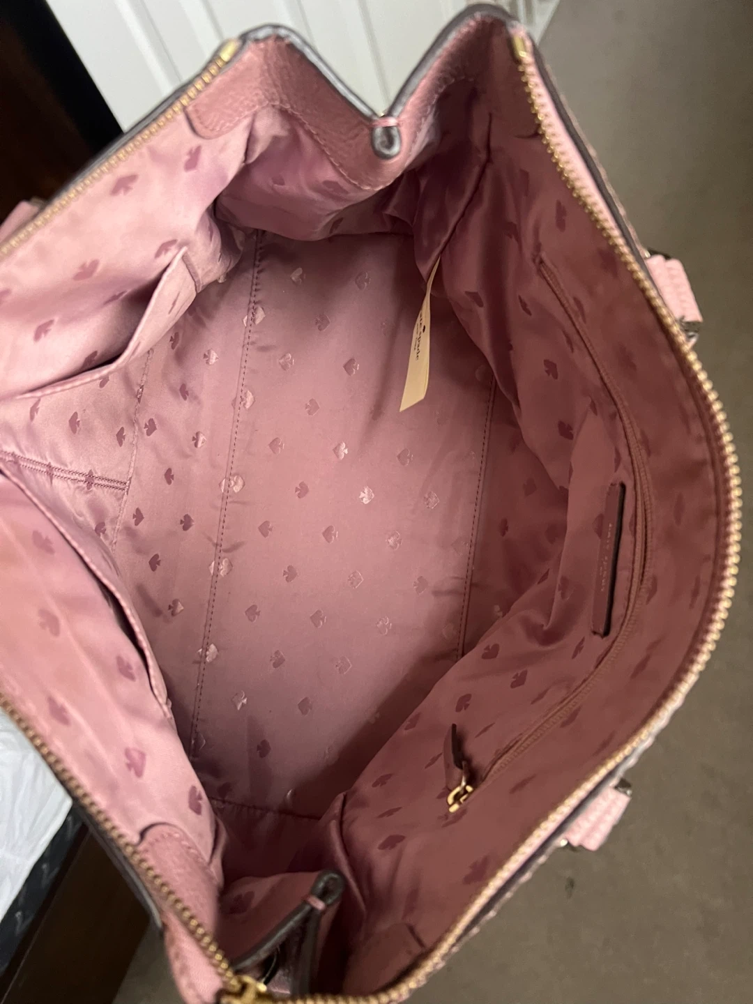 Selling a Kate Spade bag in a lovely pink leather. It's in great condition and ready for a new owner! The bag features a zip closure and an adjustable shoulder strap. The interior is lined with a pink fabric with spade patterns.