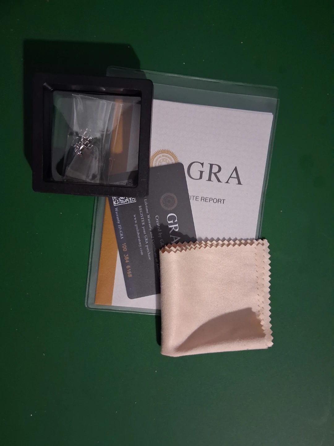 GRA mossinate Diamond Certificate & Cleaning Cloth