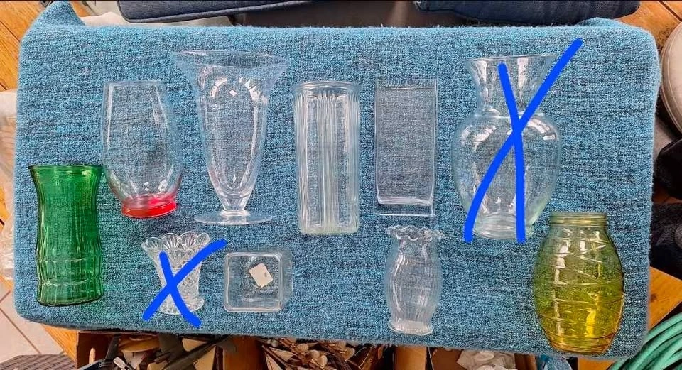 Selling 8 vases individually, $4 each for 6 large and $2 each for 2 small, or $10 as a bundle for all. Vases are 4" to 11" in height. Pick up is Bloomington and 9th line area.