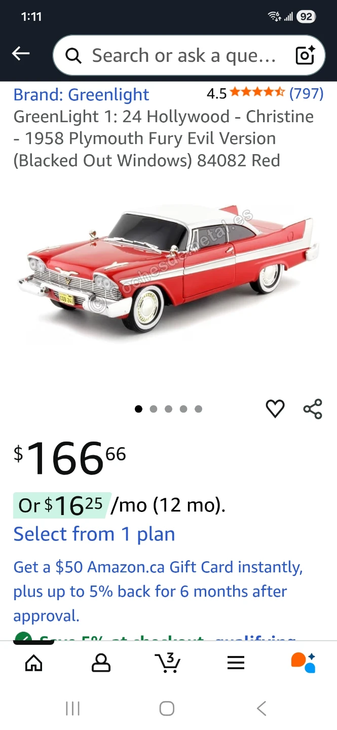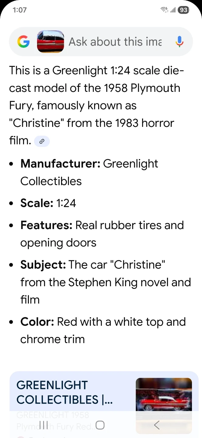 Selling a Greenlight 1:24 scale die-cast model of the 1958 Plymouth Fury, famously known as "Christine" from the 1983 horror film!