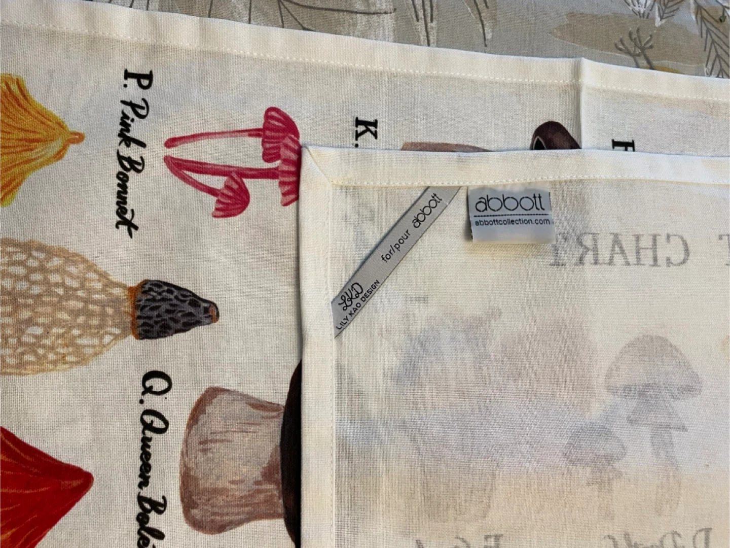 Add a touch of whimsy to your kitchen with this Abbott tea towel! Featuring a charming Funghi Alphabet Chart design, it's both decorative and functional. Perfect for drying dishes or adding a pop of personality to your kitchen decor