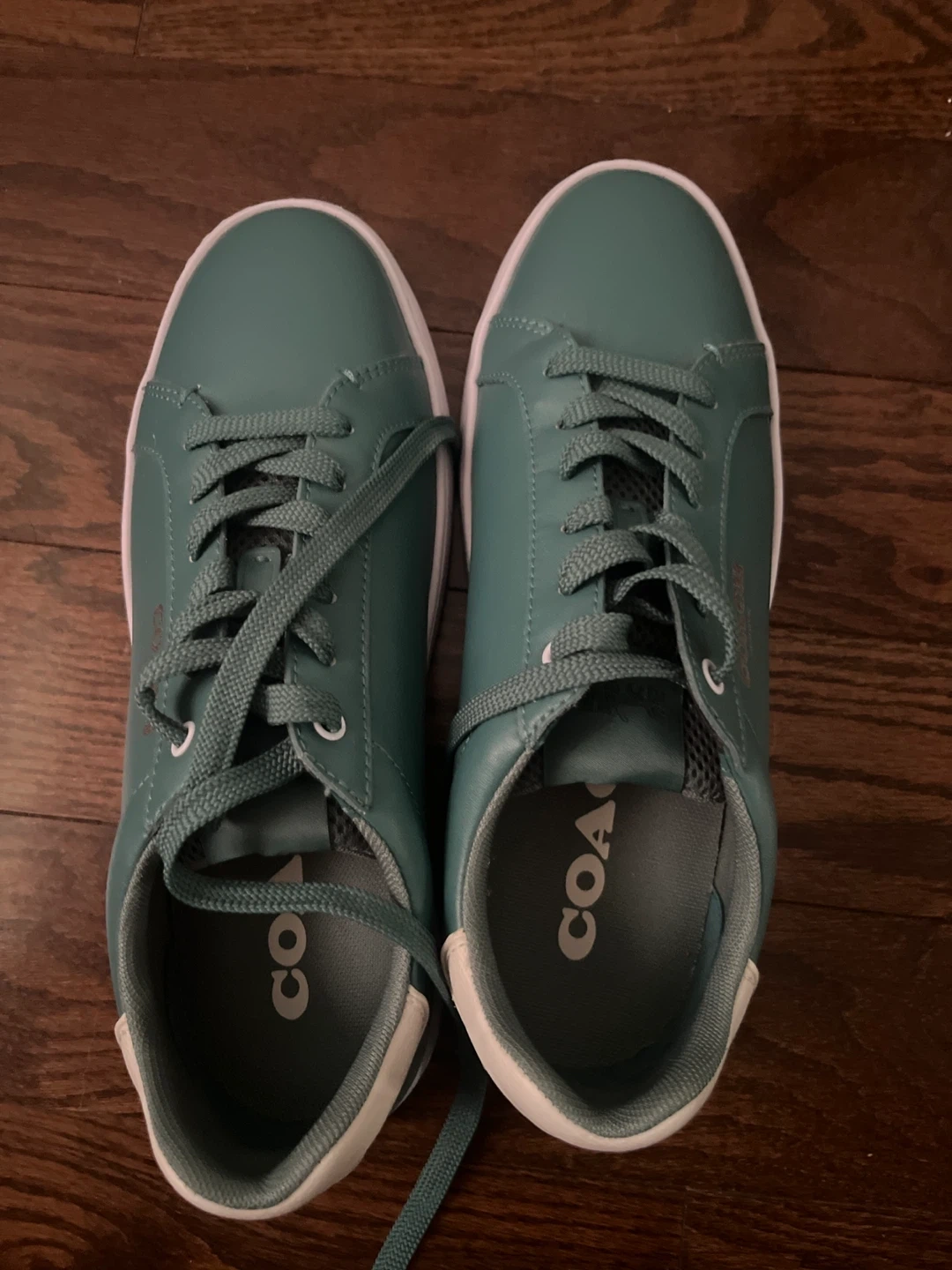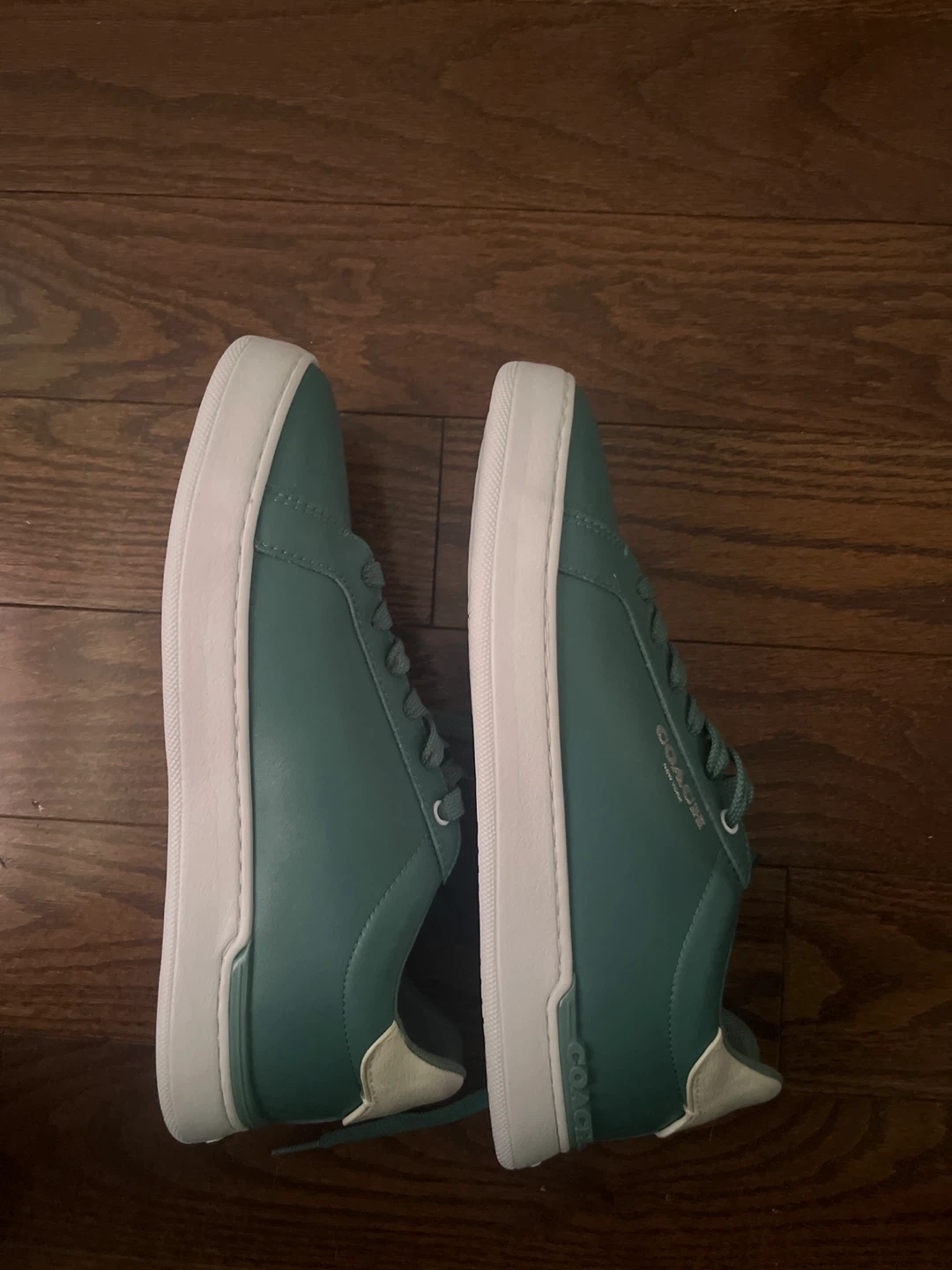Selling a pair of Coach sneakers in a lovely green colour! The shoes are made of leather and have the Coach logo on the side and sole. Never been worn before.