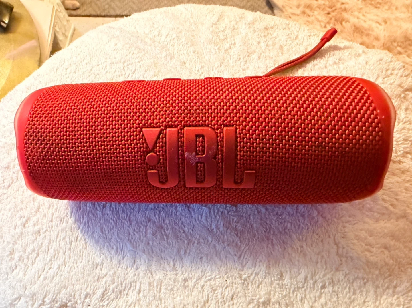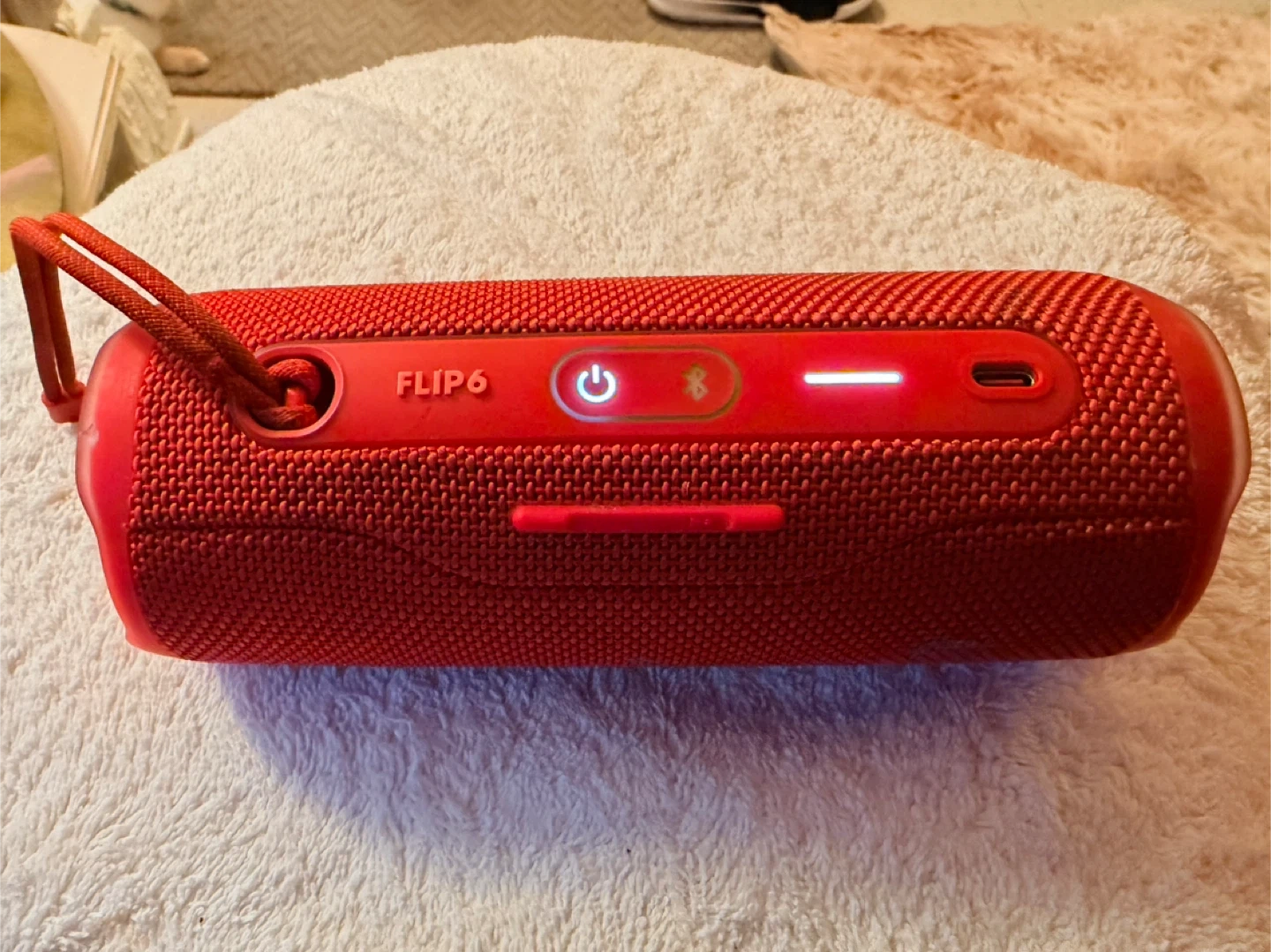Selling a vibrant red JBL Flip 6 portable Bluetooth speaker! It's in great shape and ready to bring the tunes wherever you go. This speaker is known for its rugged design and powerful sound, perfect for both indoor and outdoor use. The compact size makes it easy to carry around, and the built-in Bluetooth ensures seamless connectivity with your devices