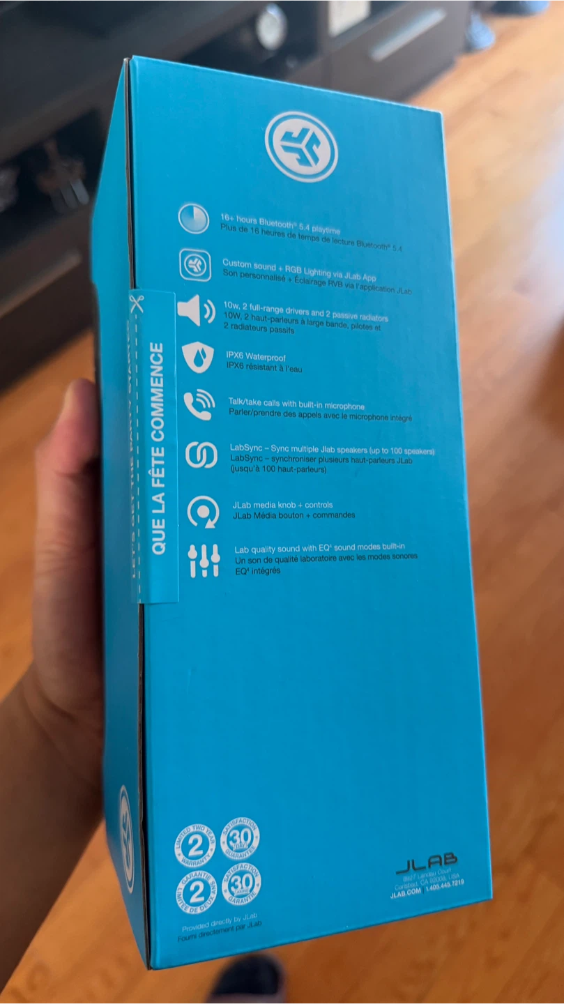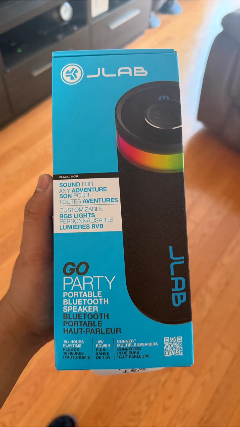 Selling a brand new JLab Go Party portable Bluetooth speaker! It's still in its original box. Here are some of its features:
