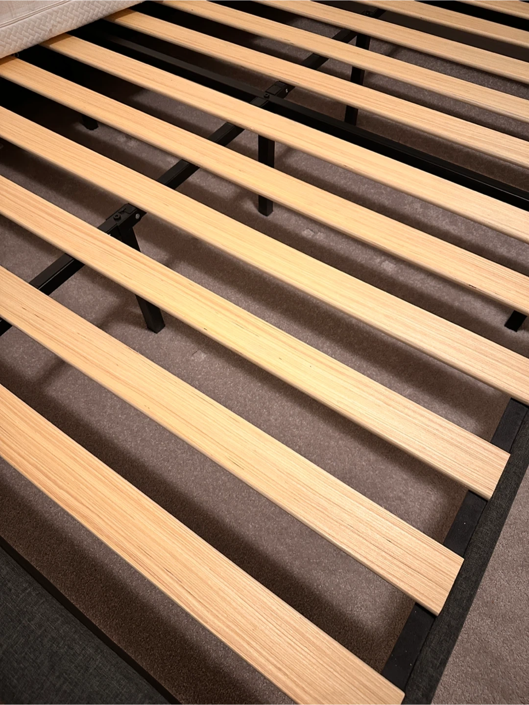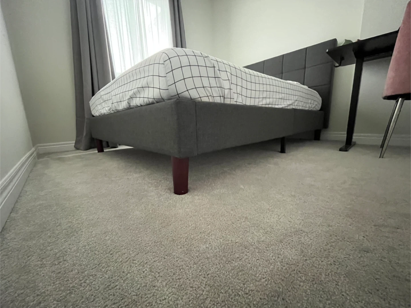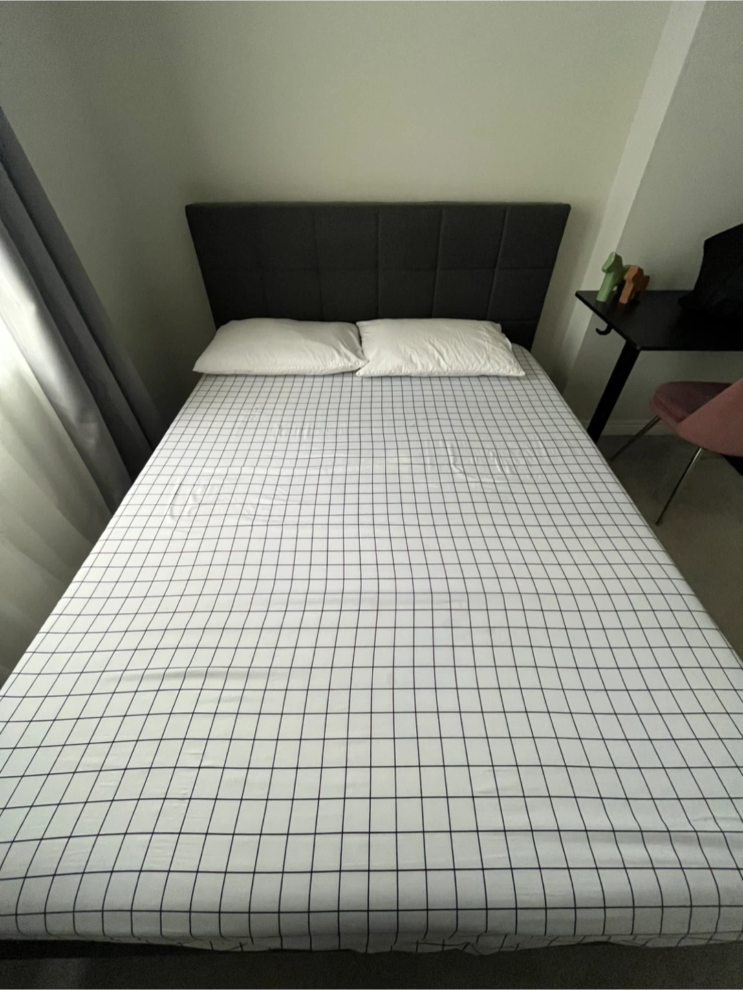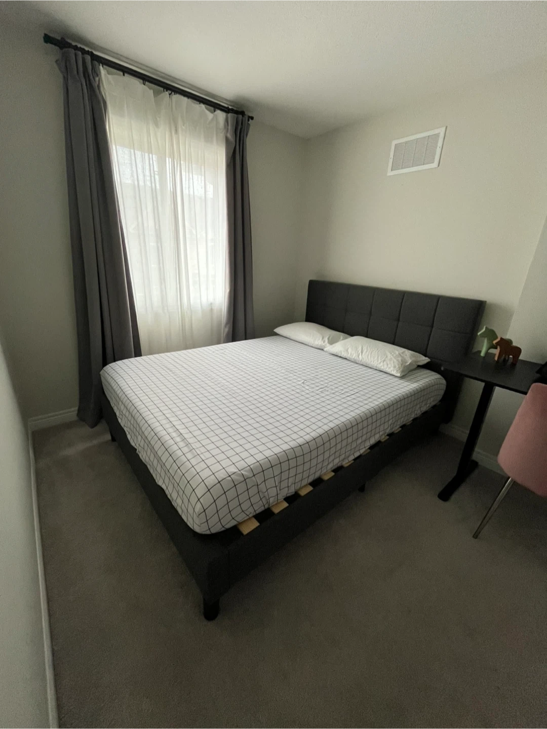 Selling a grey upholstered platform bed frame. It's in great shape and ready for a new home. Perfect for adding a touch of modern style to your bedroom!
