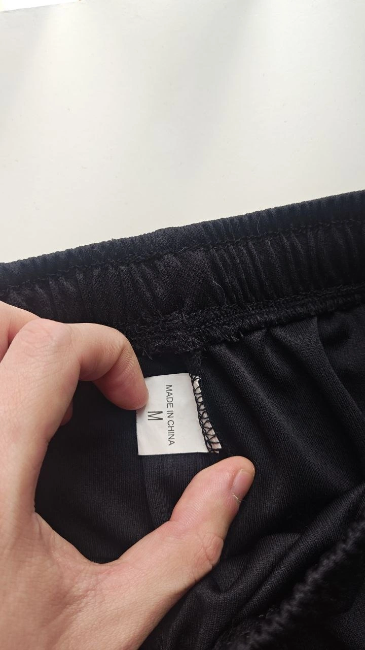 Features: lightweight athletic fabric, elastic waist, drawstring, sporty trim