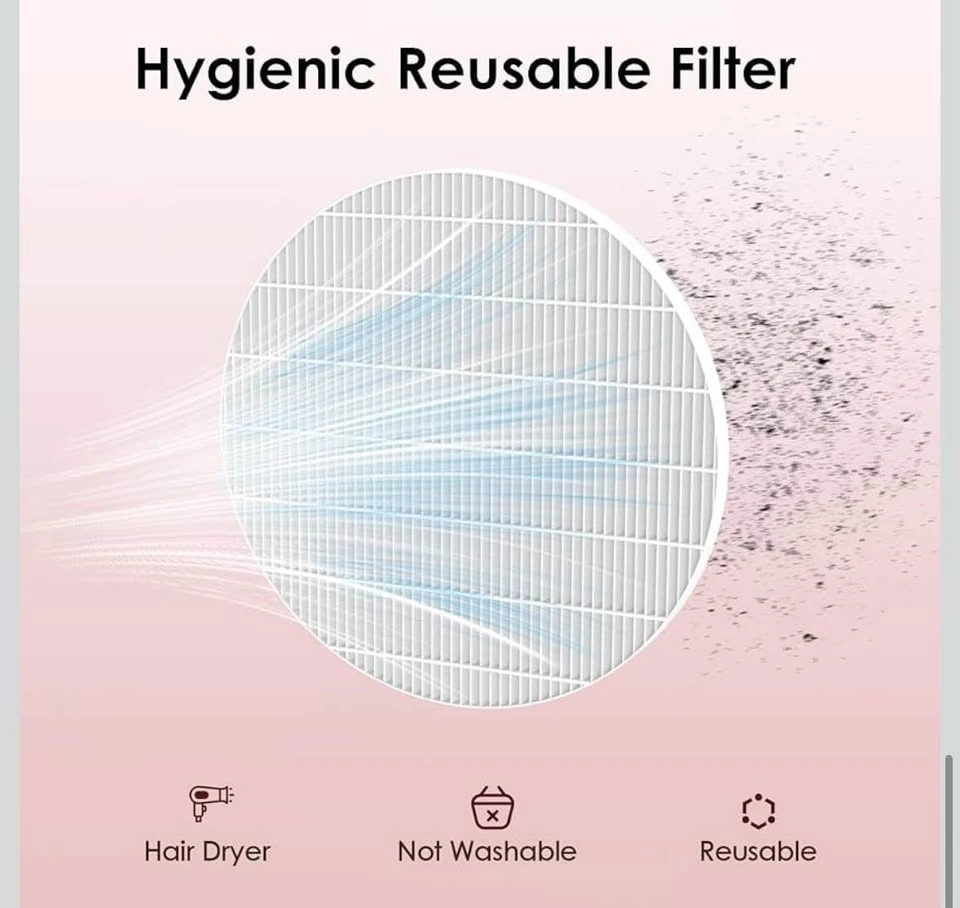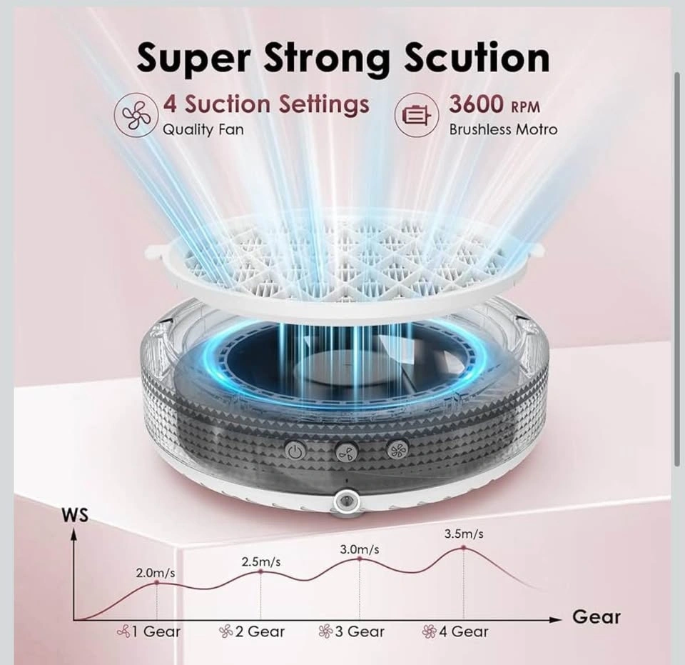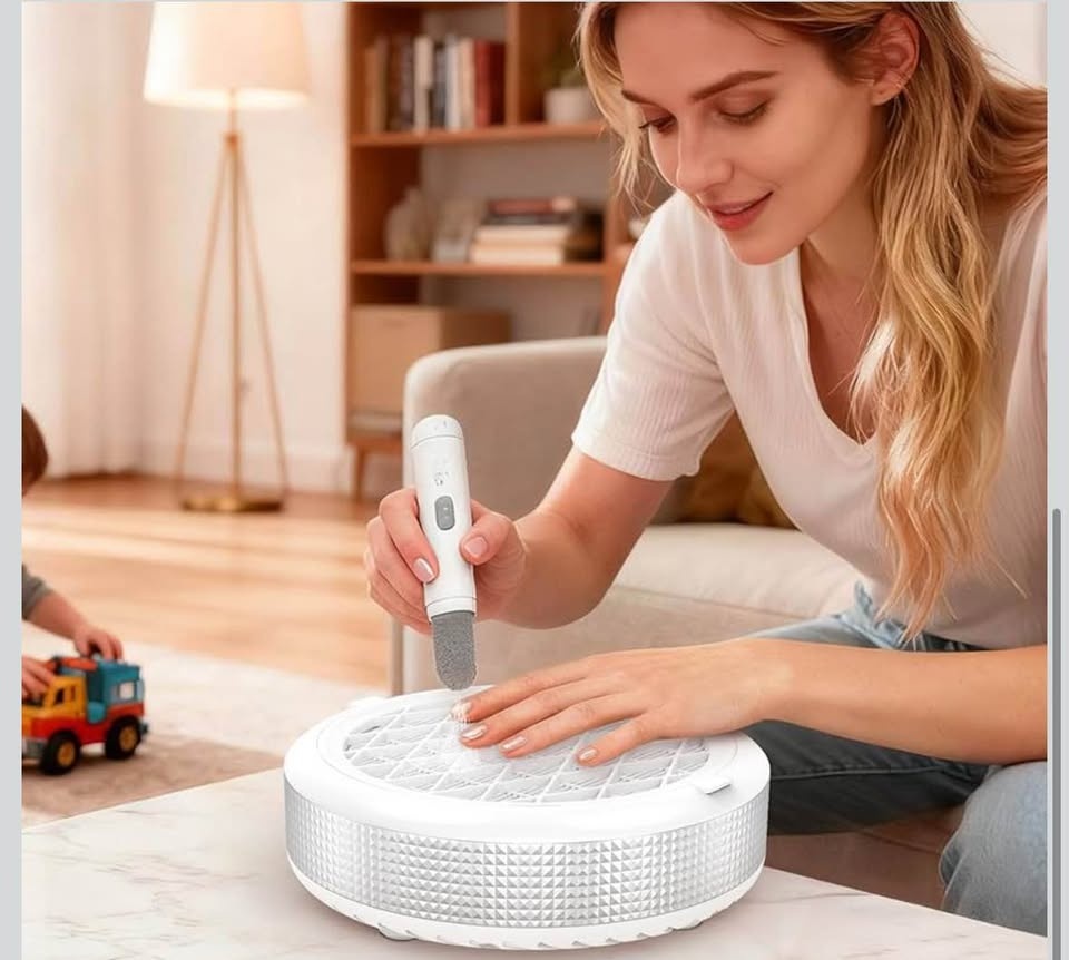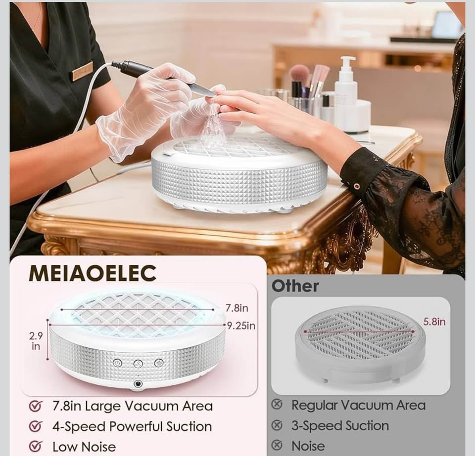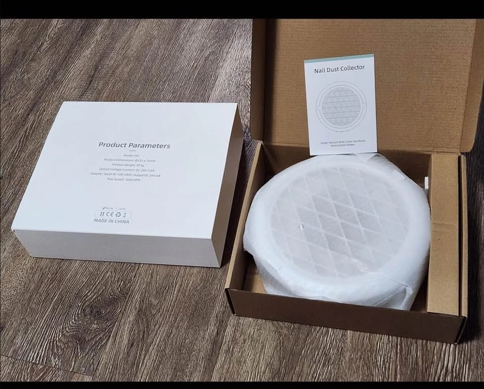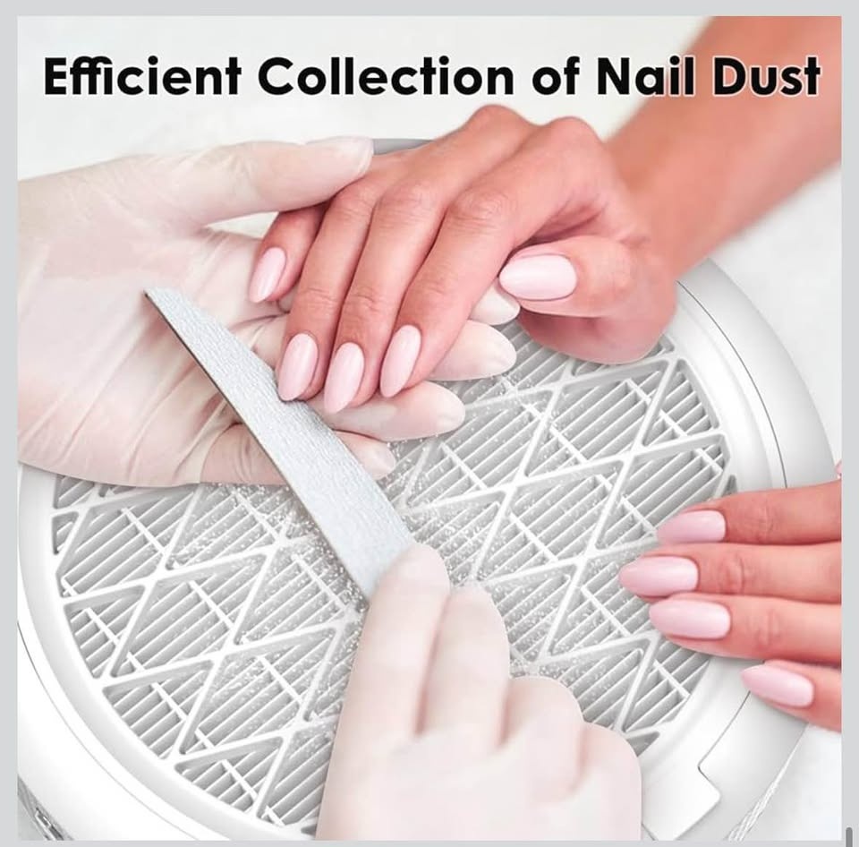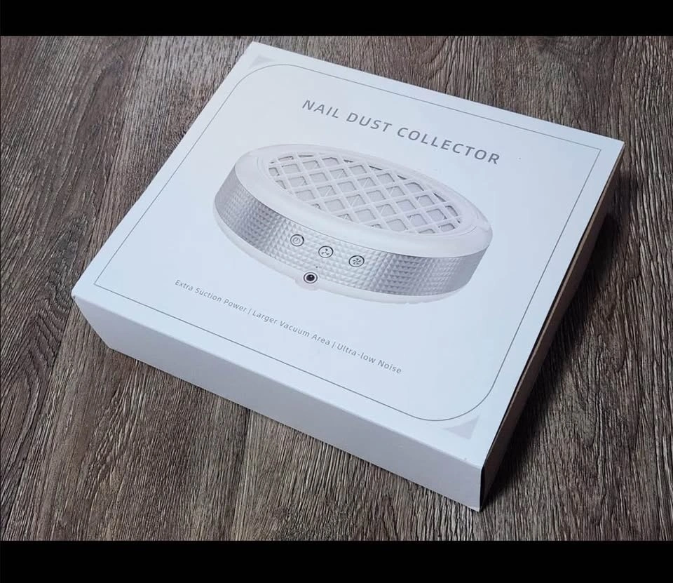 New nail dust collector with 4 suction settings and a reusable filter. Has a brushless motor and is designed for efficient collection of nail dust.