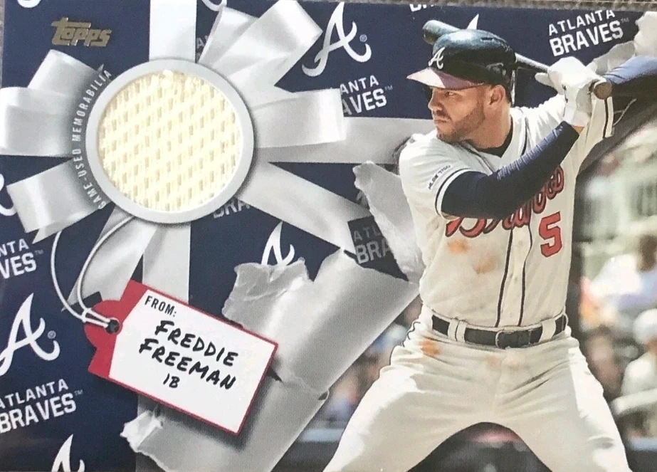 Selling a Topps baseball card featuring Freddie Freeman of the Atlanta Braves! It includes a piece of game-used memorabilia. A great addition to any baseball card collection!