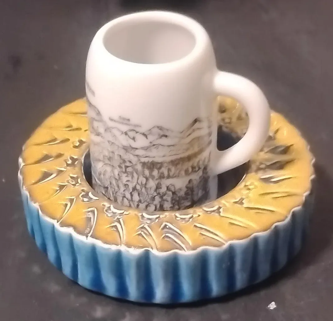 A charming espresso cup with a unique design and a decorative stand. Perfect for adding a touch of elegance to your coffee routine or as a decorative piece in your home