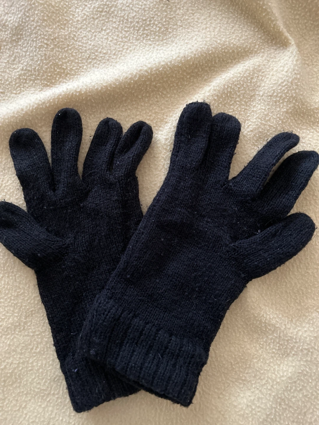 Giving away a pair of black knit gloves. They are in good condition and ready to keep your hands warm! The gloves measure approximately 9 inches in length.