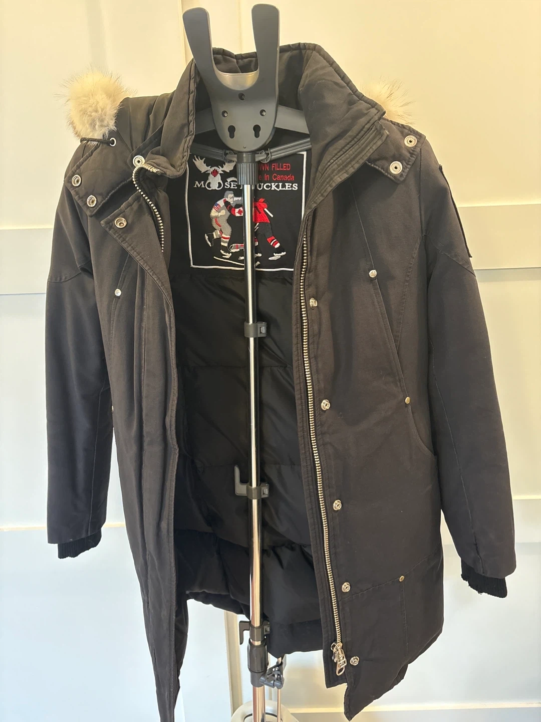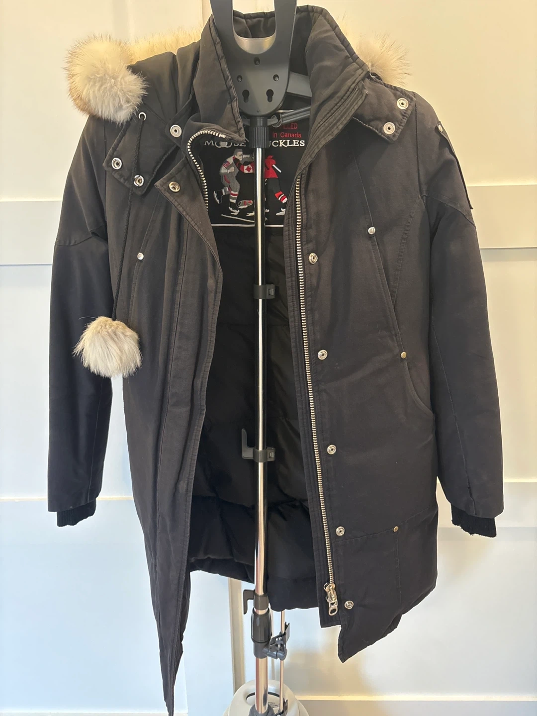 Selling a Moose Knuckles authentic Stirling parka in black. It's in great condition and ready to keep you warm this winter! The jacket features the iconic Moose Knuckles logo and design. Has been dry cleaned. More info here: https://www.mooseknucklescanada.com/products/original-stirling-parka-neoshear-m32lp203s-1001?variant=46498979643627