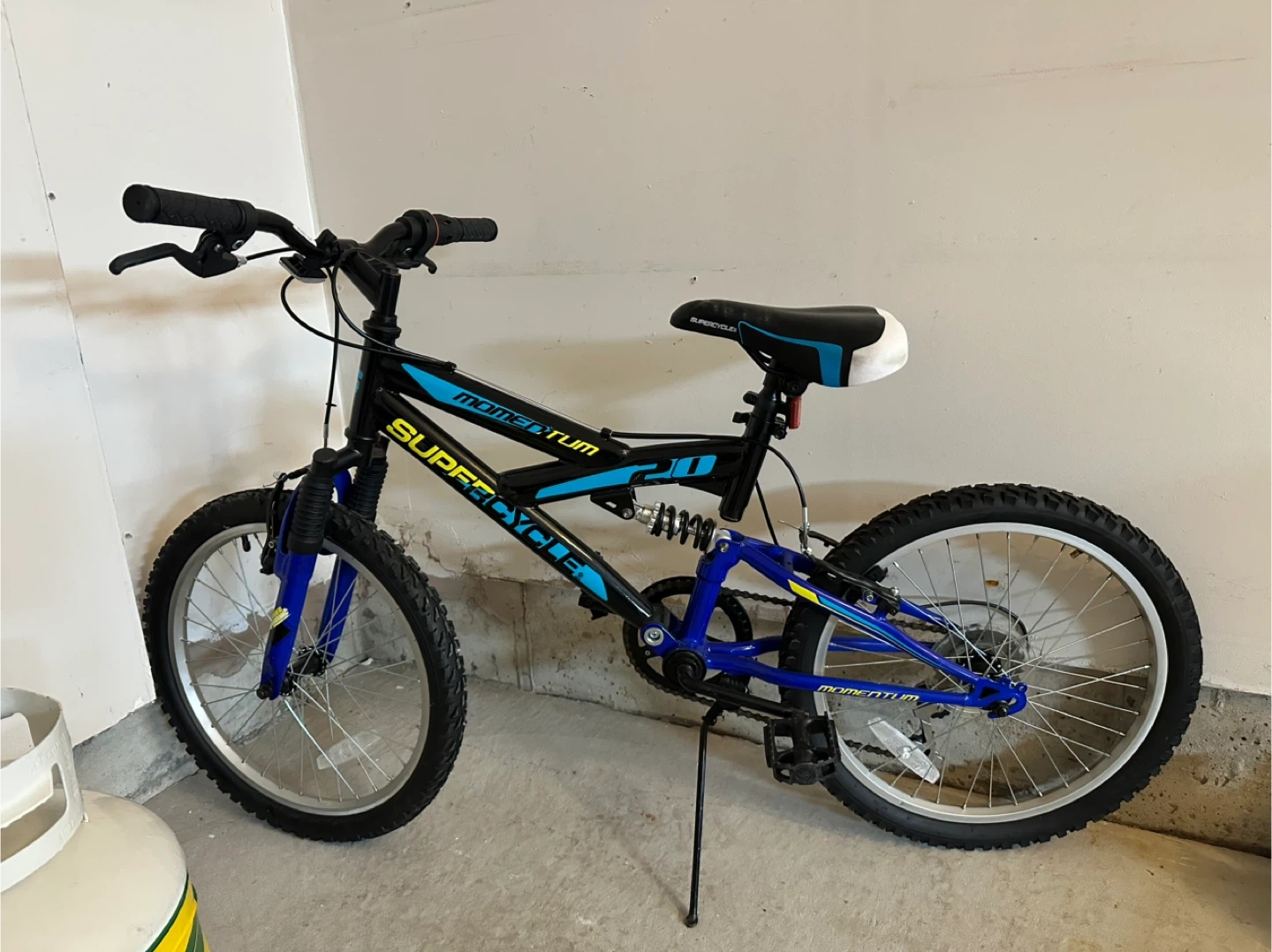 Selling a Supercycle Momentum 2.0 kids bike in blue and black. It's in great shape and ready for a new rider! Perfect for kids learning to ride or upgrading to a bigger bike