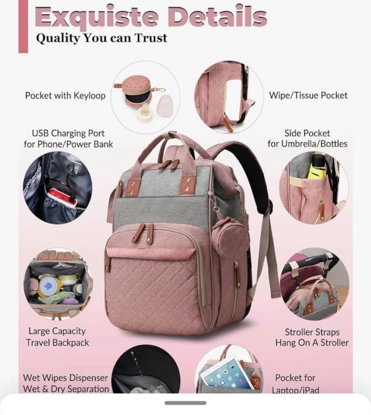 This Lamroro diaper bag backpack is perfect for parents on the go! It features: