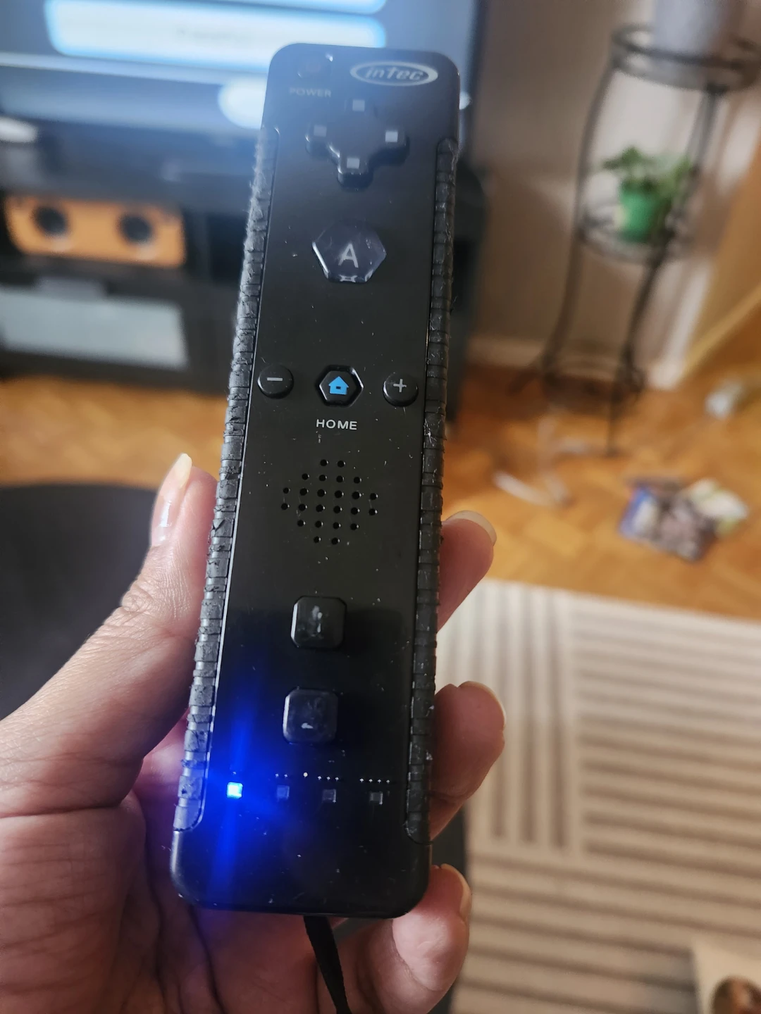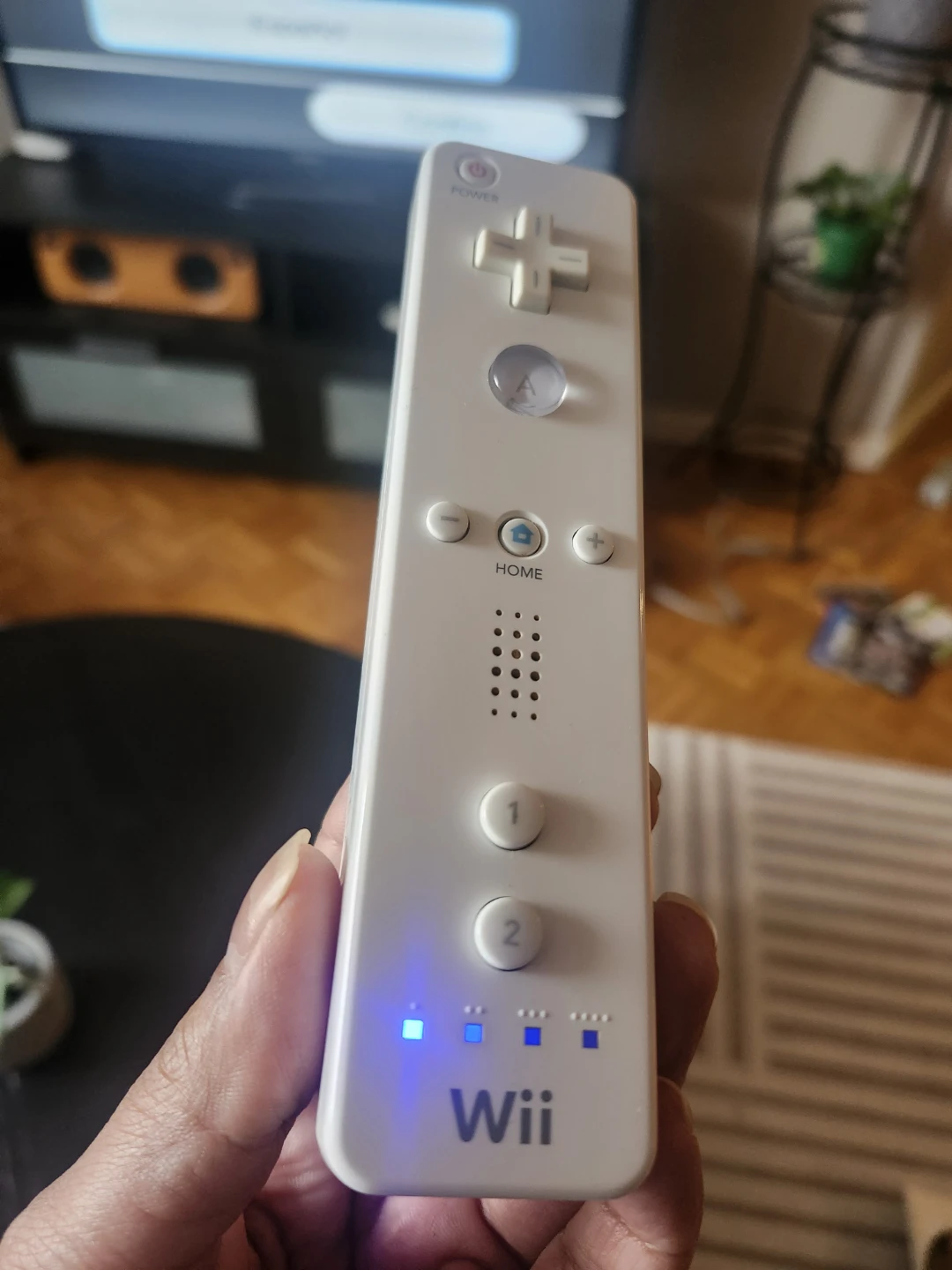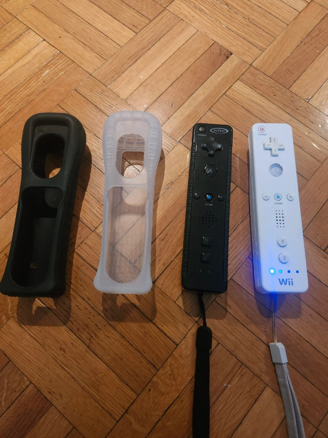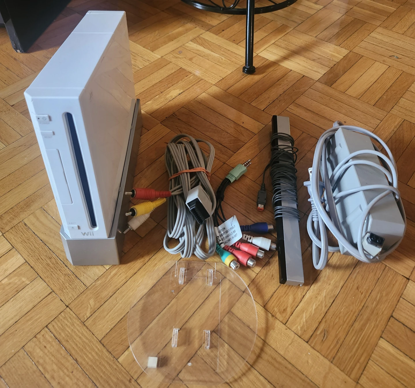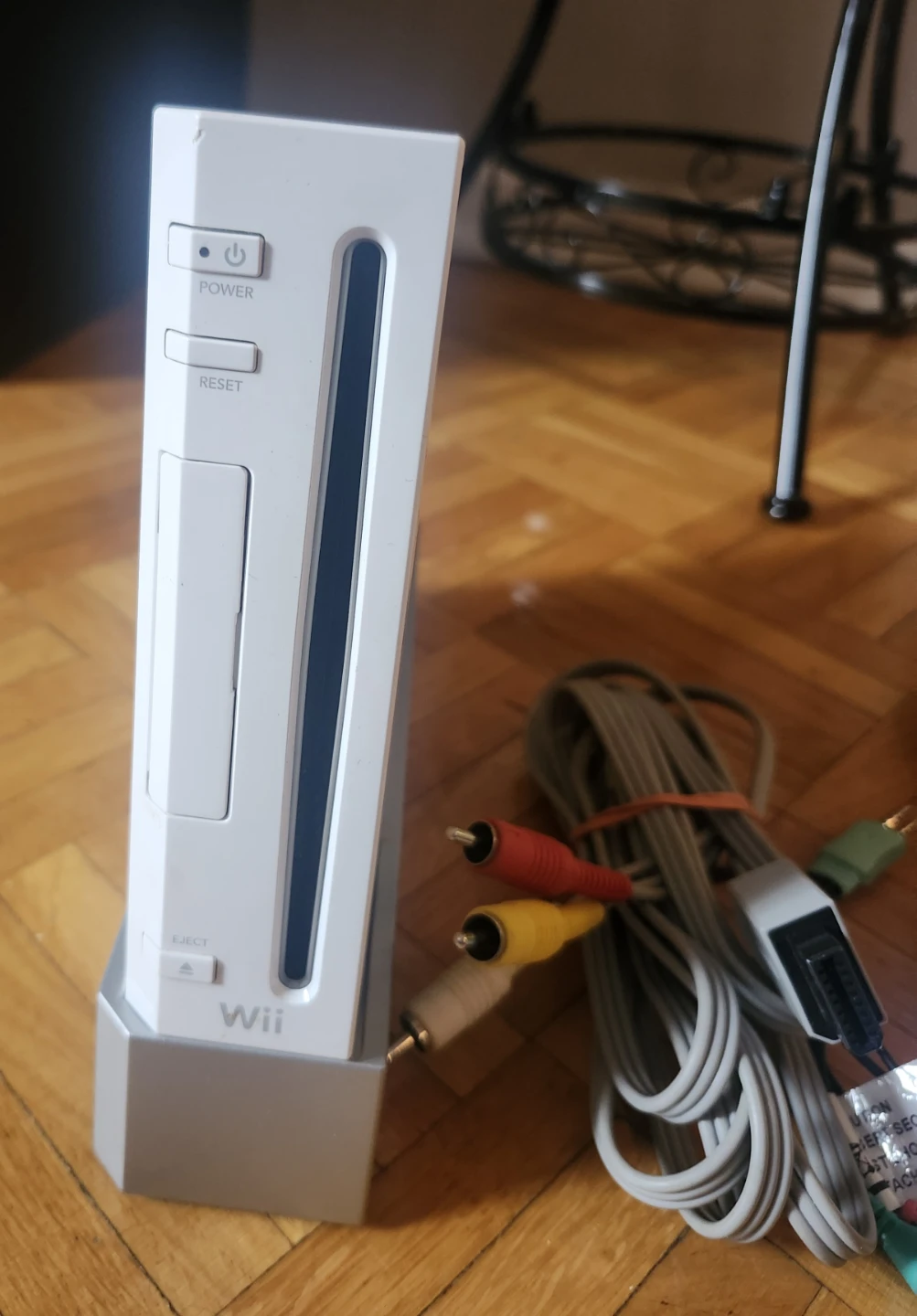 Nintendo Wii console with two controllers. One controller is white and the other is black. Includes all necessary cables and accessories to get you gaming!