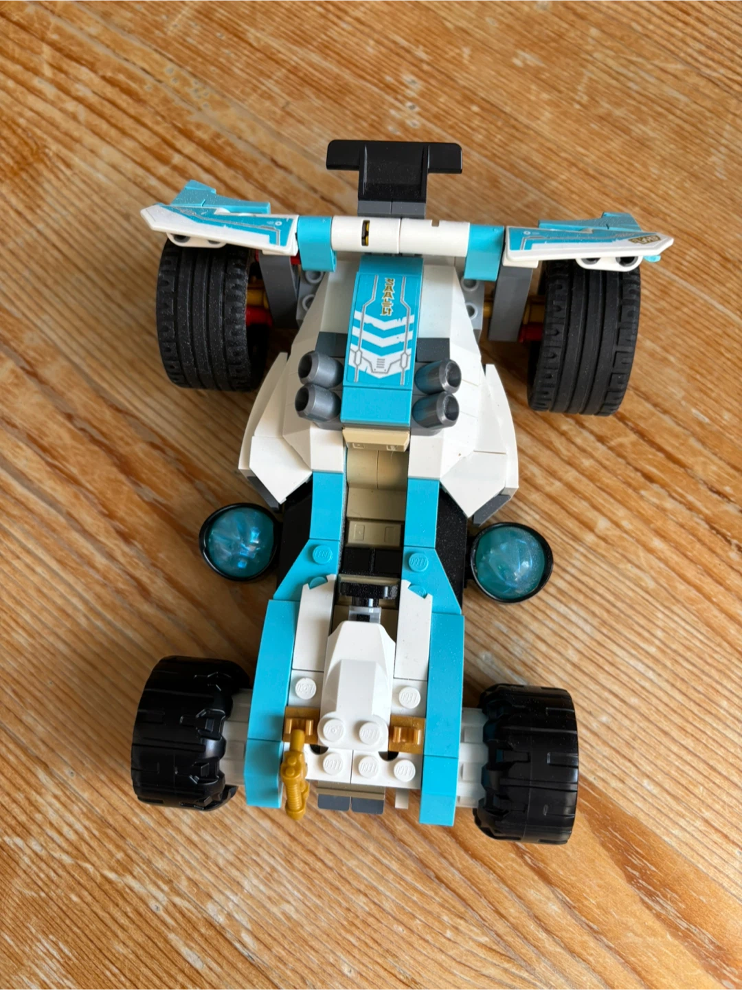 Selling a LEGO Ninjago Jay's Electric Dragon Race Car (set number 71779). This cool set features a blue and white race car with black tires and some transparent blue elements. It's a fun build for kids who love LEGO and Ninjago!