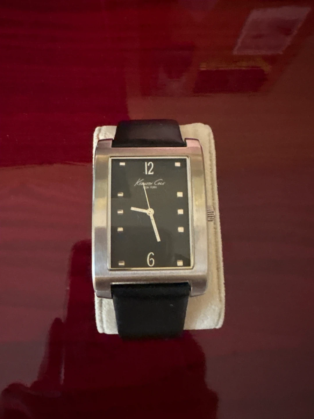 Selling a Kenneth Cole New York watch with a black face and leather band. It's in great condition and ready for a new wrist!