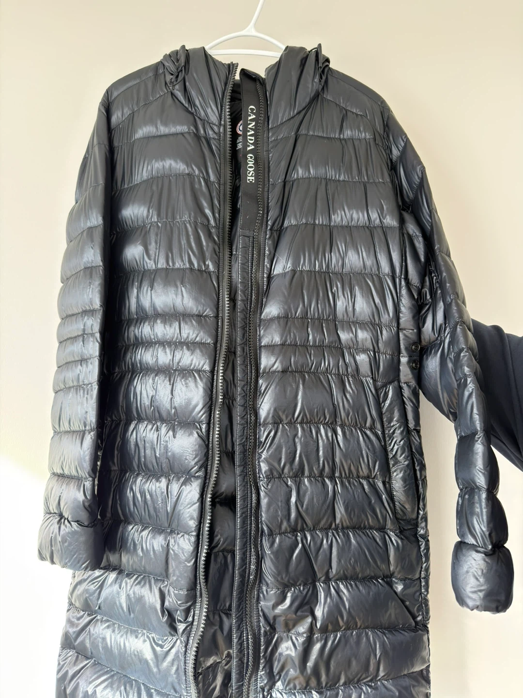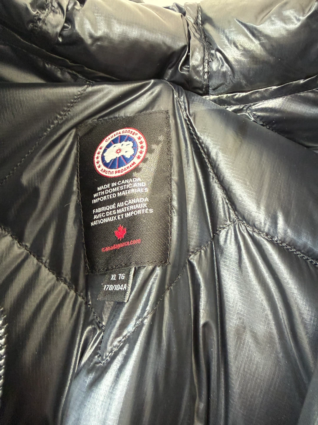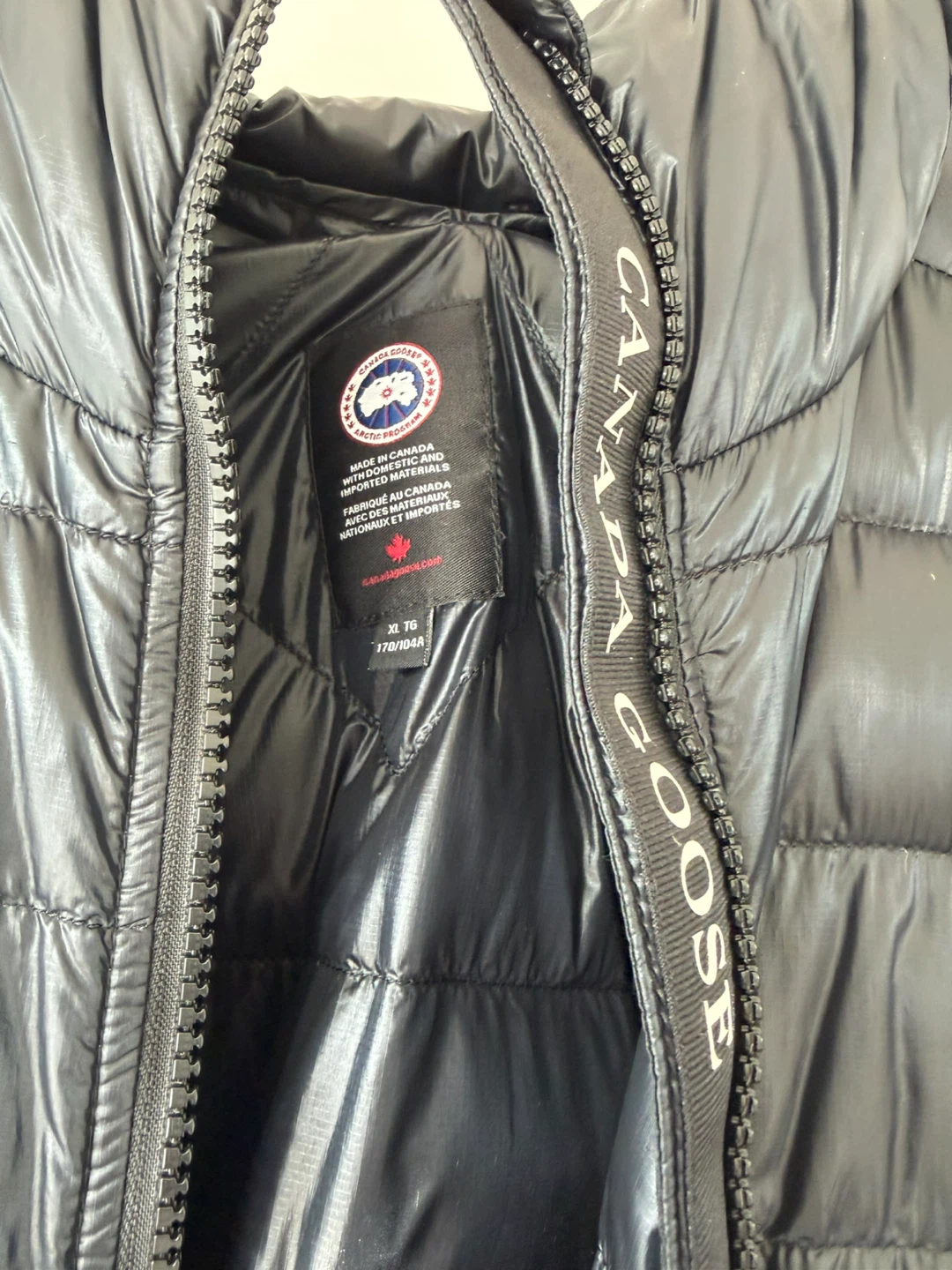 Selling a Canada Goose puffer coat in size XL! It's in great condition and ready to keep you warm this winter. The coat is black and features the classic Canada Goose logo.