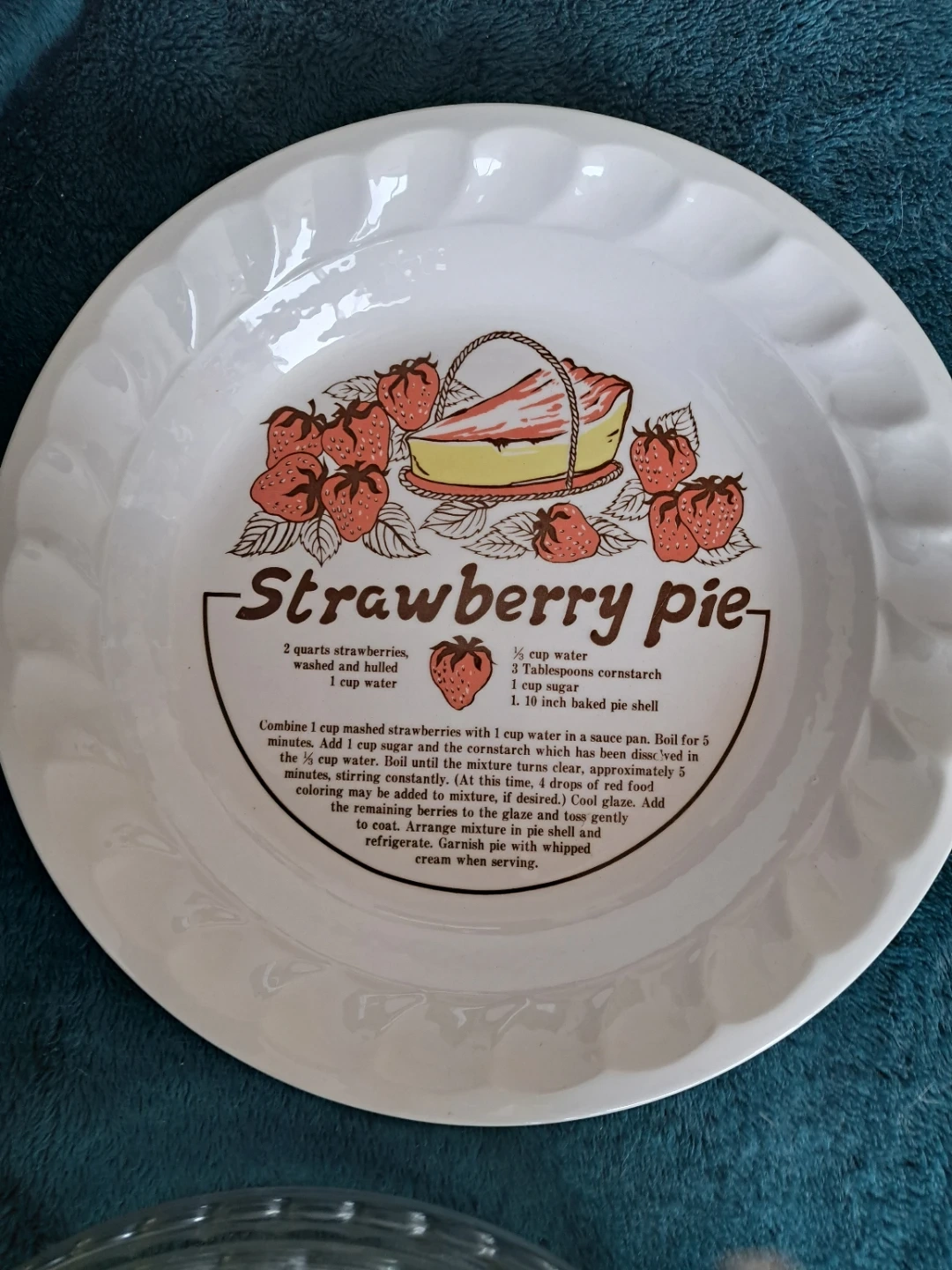 Selling a mix of pie plates! There are clear glass plates and one with a cute strawberry pie design. Perfect for baking up some delicious treats