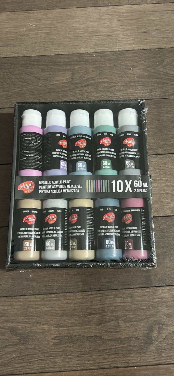 Brand new Artist's Loft Metallic Acrylic Paint set! This set includes 10 bottles, each containing 60ml (2.0 fl oz) of metallic acrylic paint. Perfect for adding a shimmering touch to your art projects