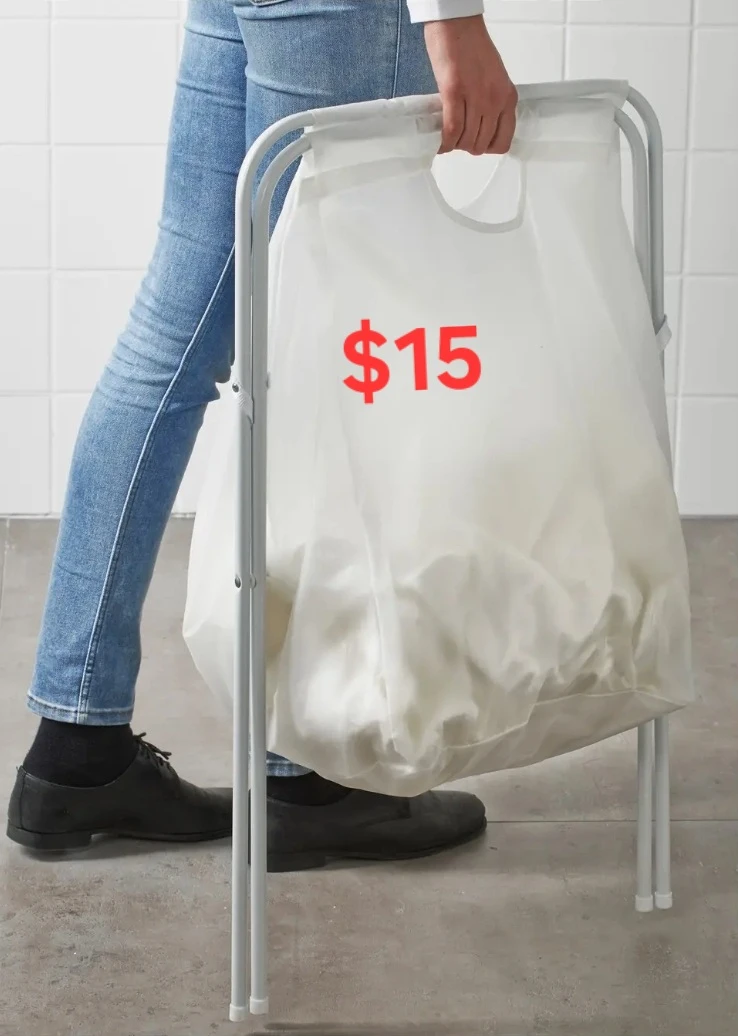 Selling an IKEA laundry bag with a stand. It's perfect for keeping your laundry organized and off the floor. Easy to carry and assemble! The laundry bag is white.