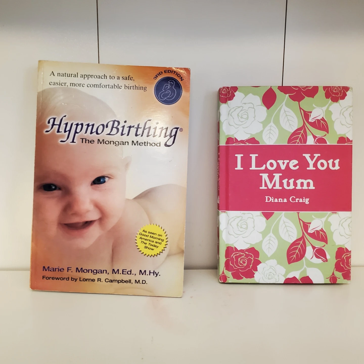 Giving away two books together! One is "HypnoBirthing: The Morgan Method" by Marie F. Morgan, a natural approach to childbirth. The other is "I Love You Mum" by Diana Craig.