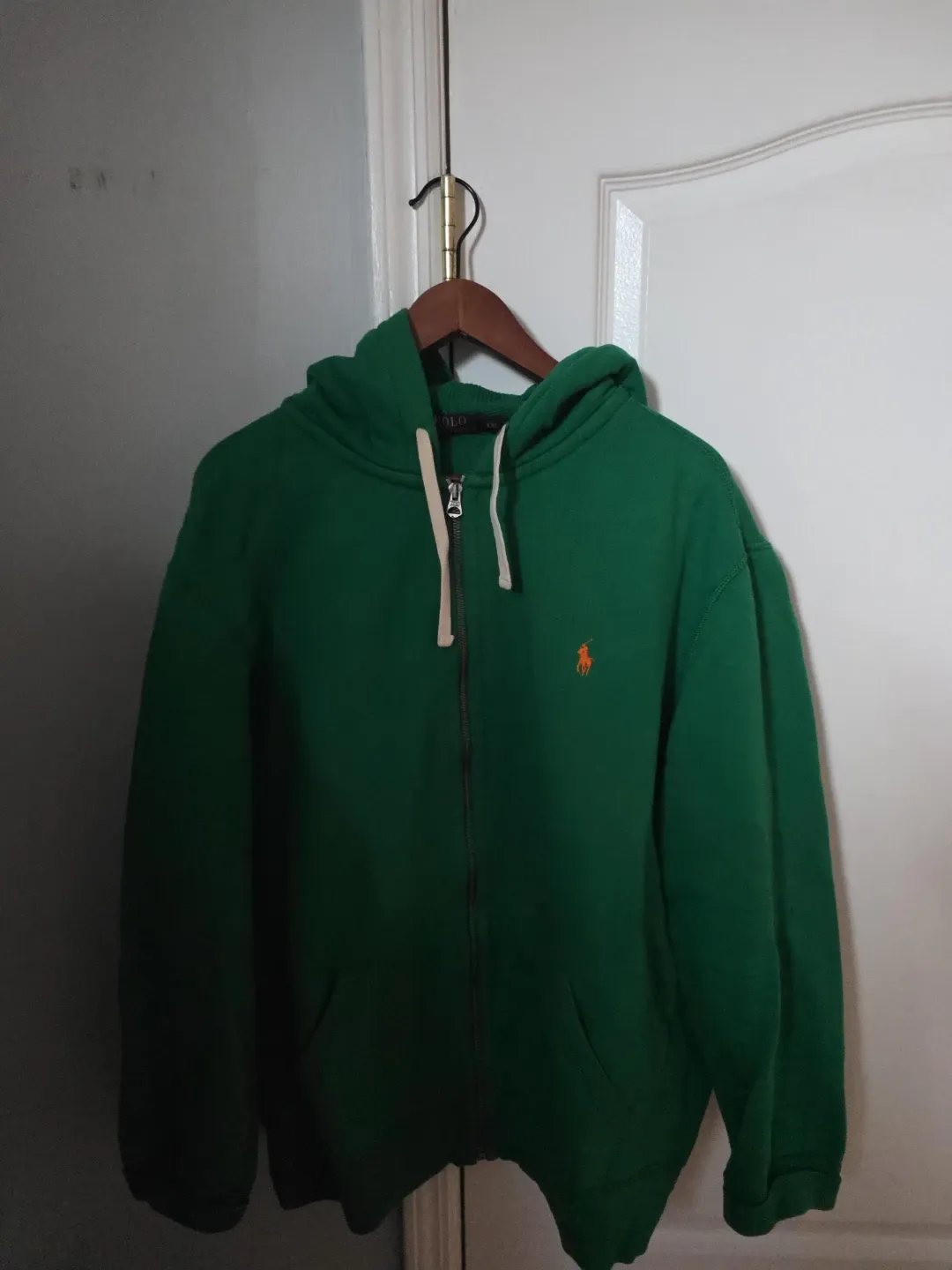 Selling a Polo Ralph Lauren full zip hoodie in green. It's a size XXL. The hoodie features the classic Polo logo on the chest. It's in great condition and ready for a new owner!