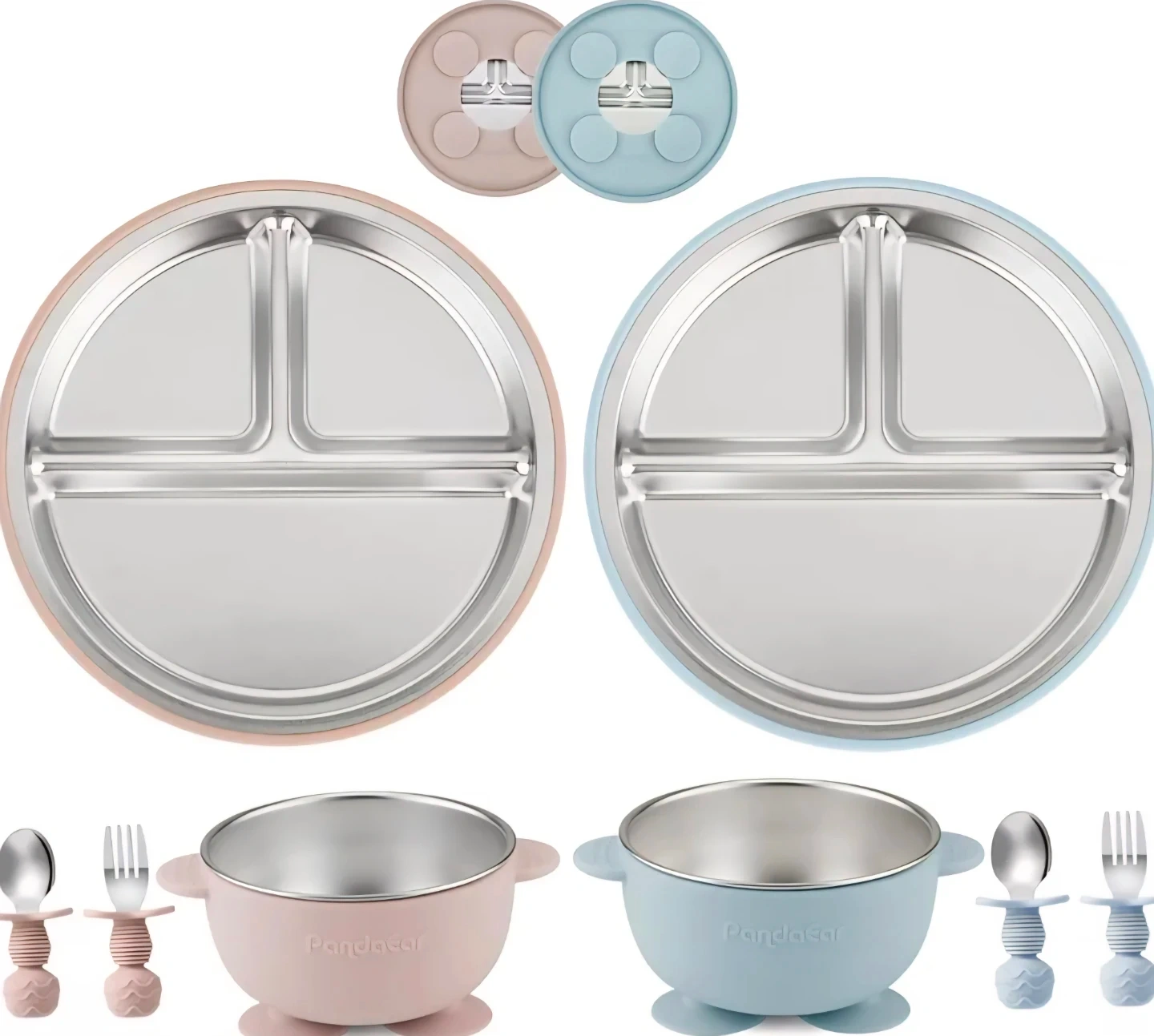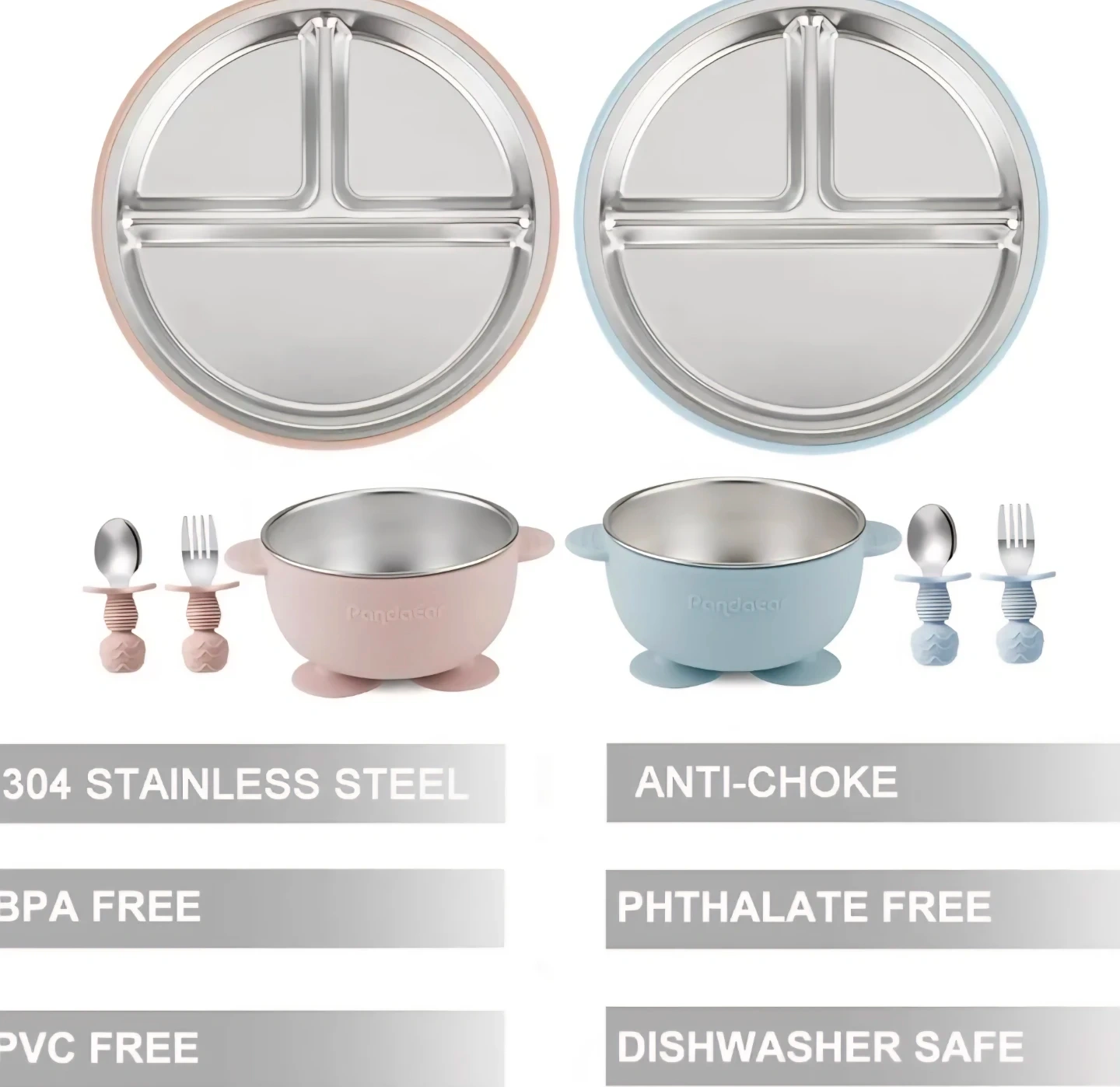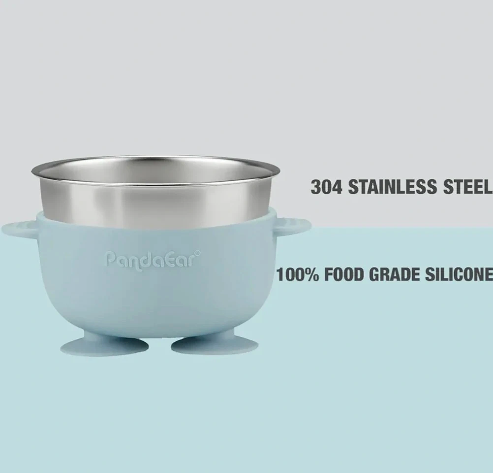 This PandaEar baby feeding set is perfect for your little one! The set includes a bowl and a plate, both made with 304 stainless steel and 100% food-grade silicone. PandaEar 8PCS Baby Feeding Set | Stainless Steel Suction Plates and Bowls with Silicone Fork and Spoon Utensils | Baby Led Weaning Eating Set for Toddlers & Kids (Pink & Blue)
