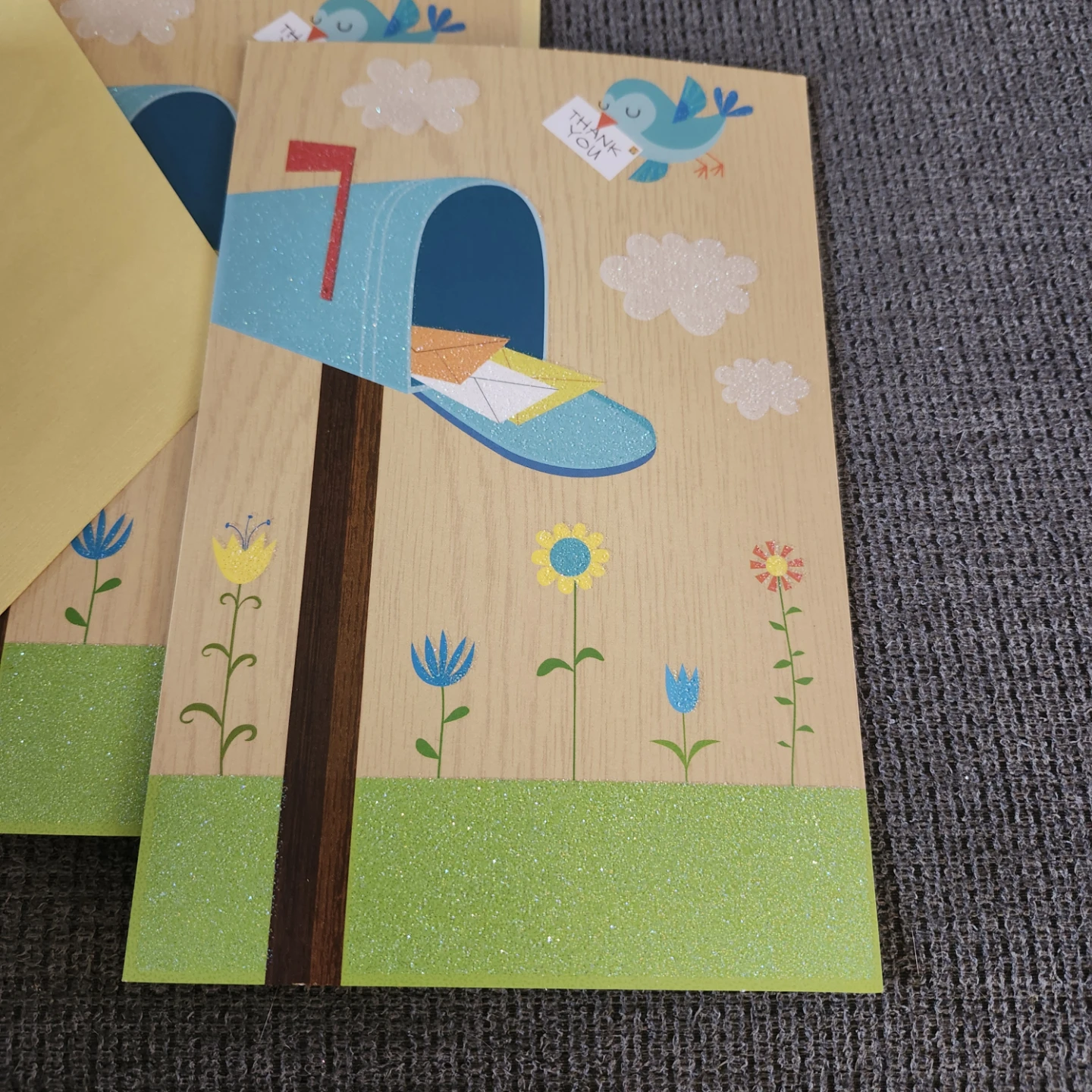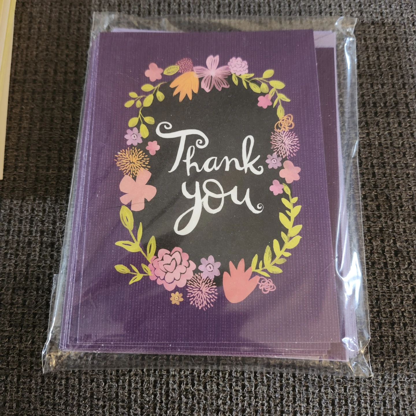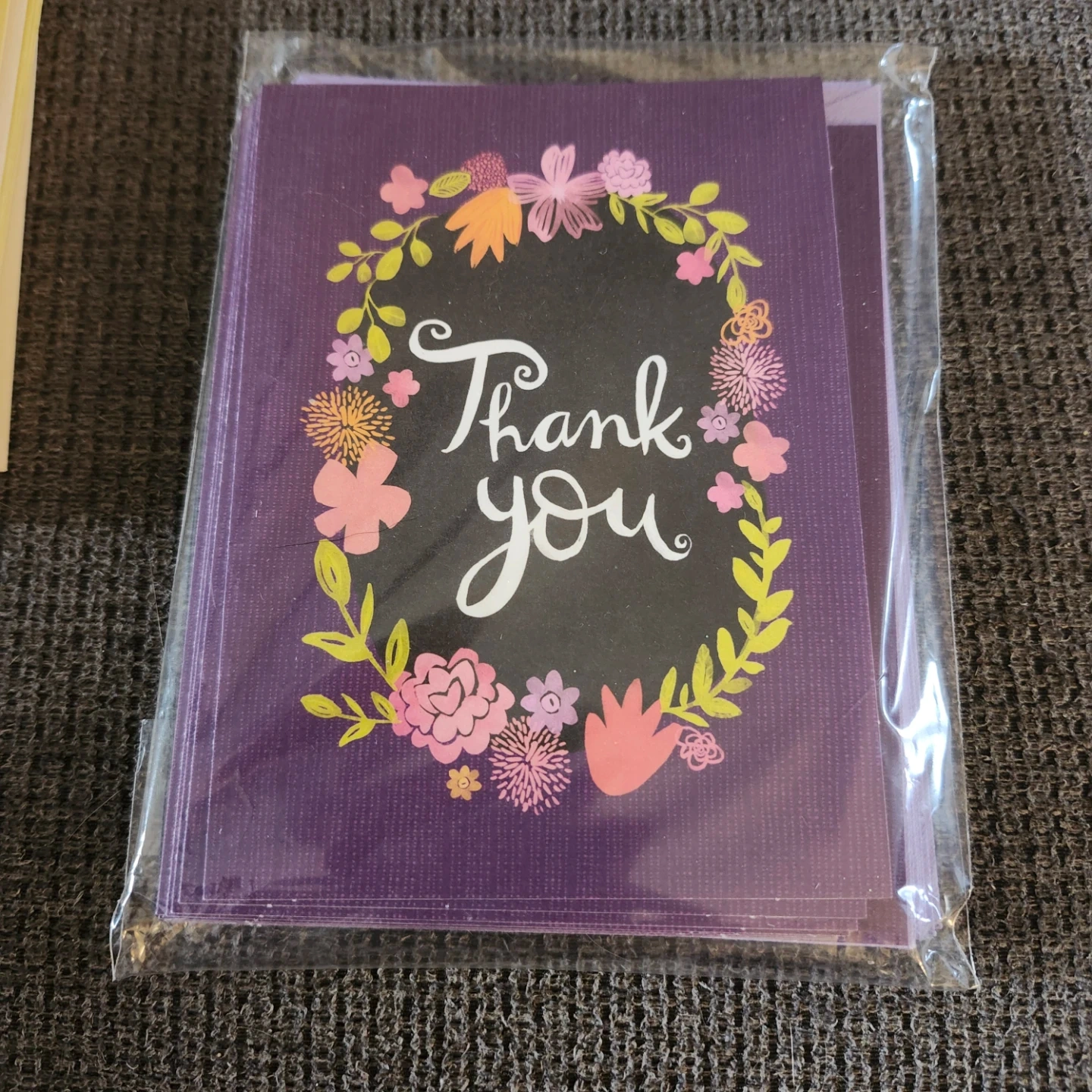 New pack of Hallmark thank you cards! There are 10 cards in the pack. The cards are blank inside for your personal message. Plus 8 more individual thank you cards.