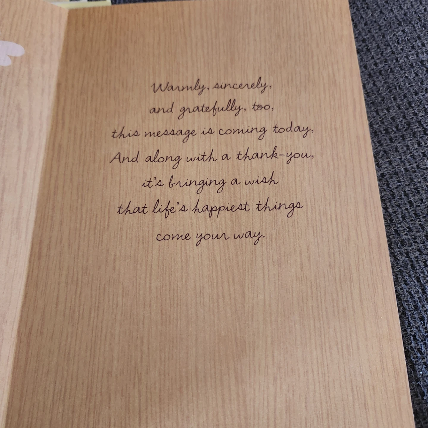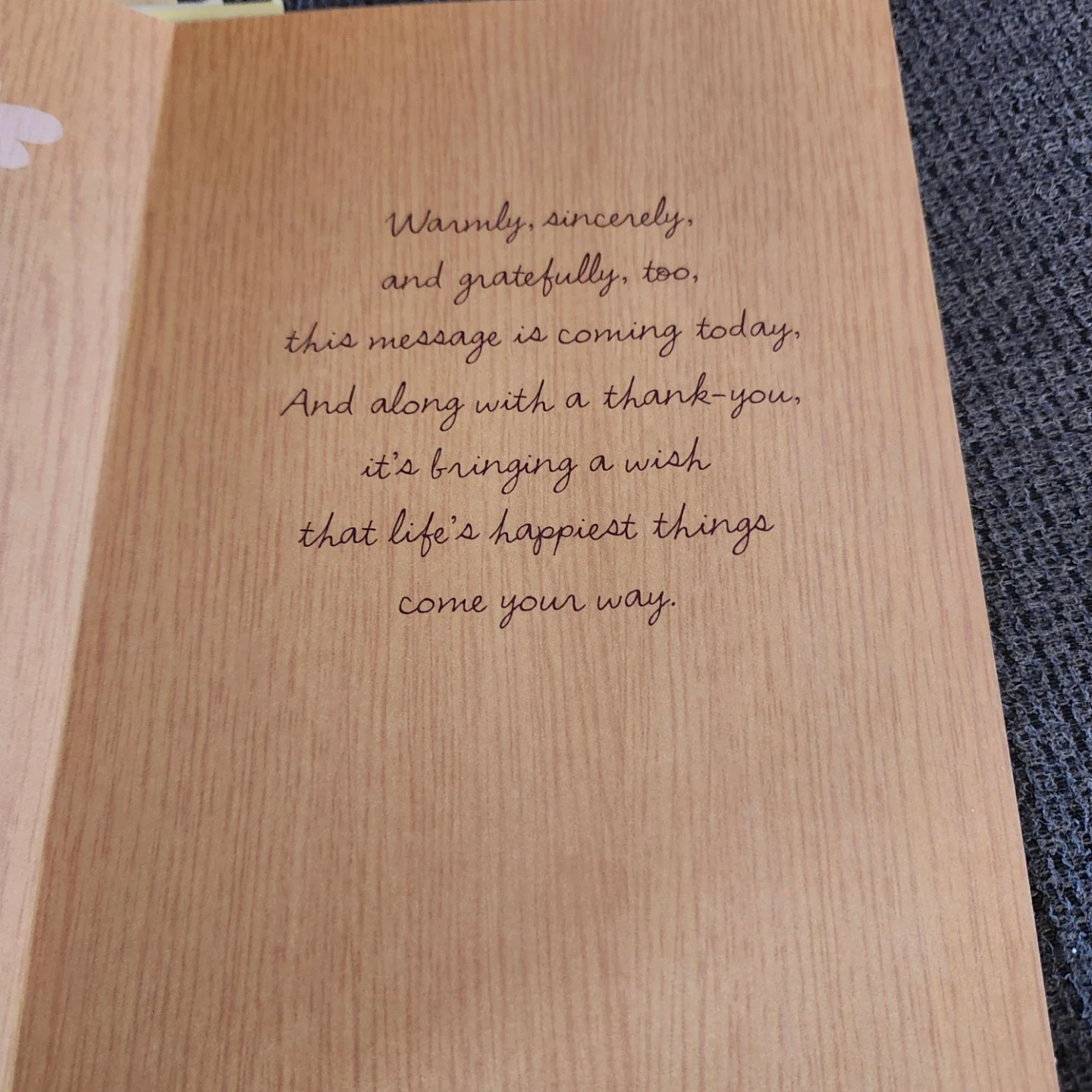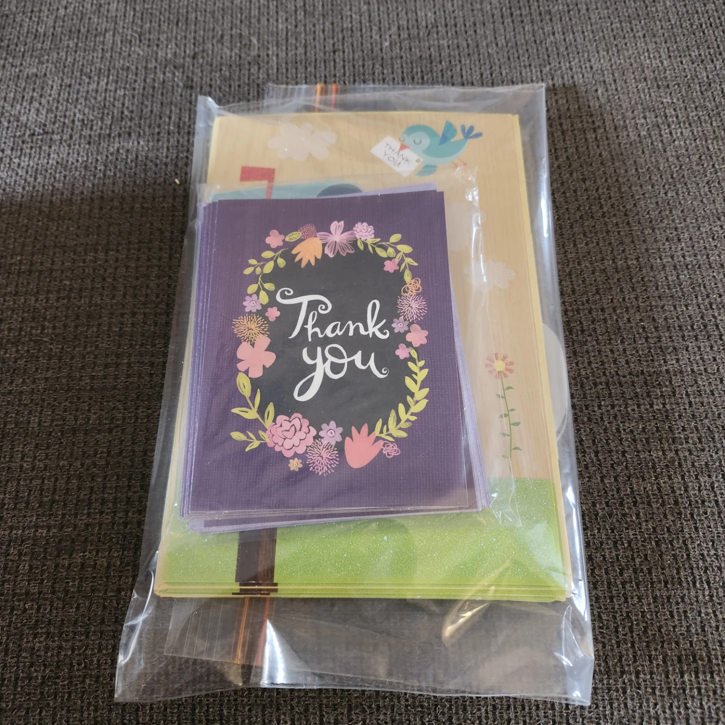 New pack of Hallmark thank you cards! There are 10 cards in the pack. The cards are blank inside for your personal message. Plus 8 more individual thank you cards.
