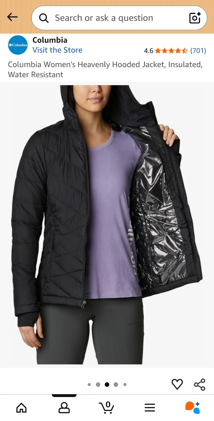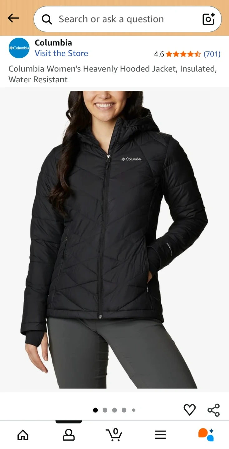 Selling a brand new never used Columbia Women's Heavenly Hooded Jacket in black,large. It's insulated and water resistant, perfect for our Canadian weather