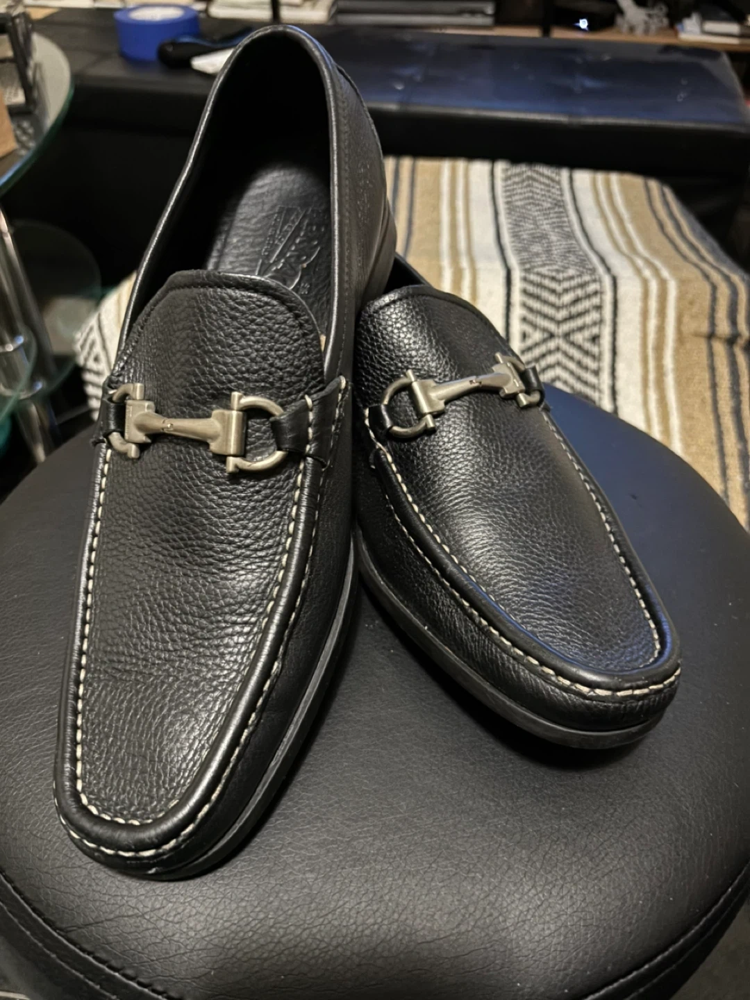 Selling a pair of Salvatore Ferragamo black leather loafers in size 8. They're in great condition and ready for a new owner!