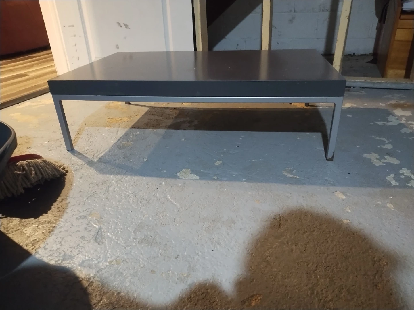 Selling a used IKEA KLUBBO coffee table in black and silver. It's a stylish and functional piece, perfect for any living room setup. The table features a sleek design and sturdy construction. Great for holding books, remotes, or your favourite snacks while you relax!