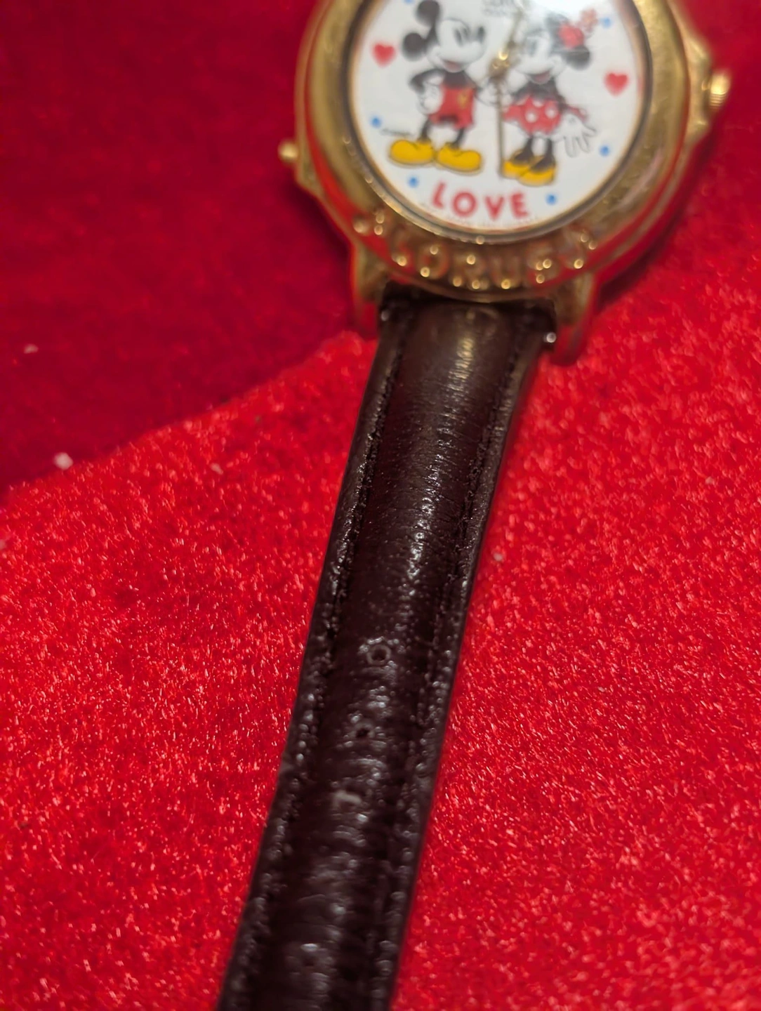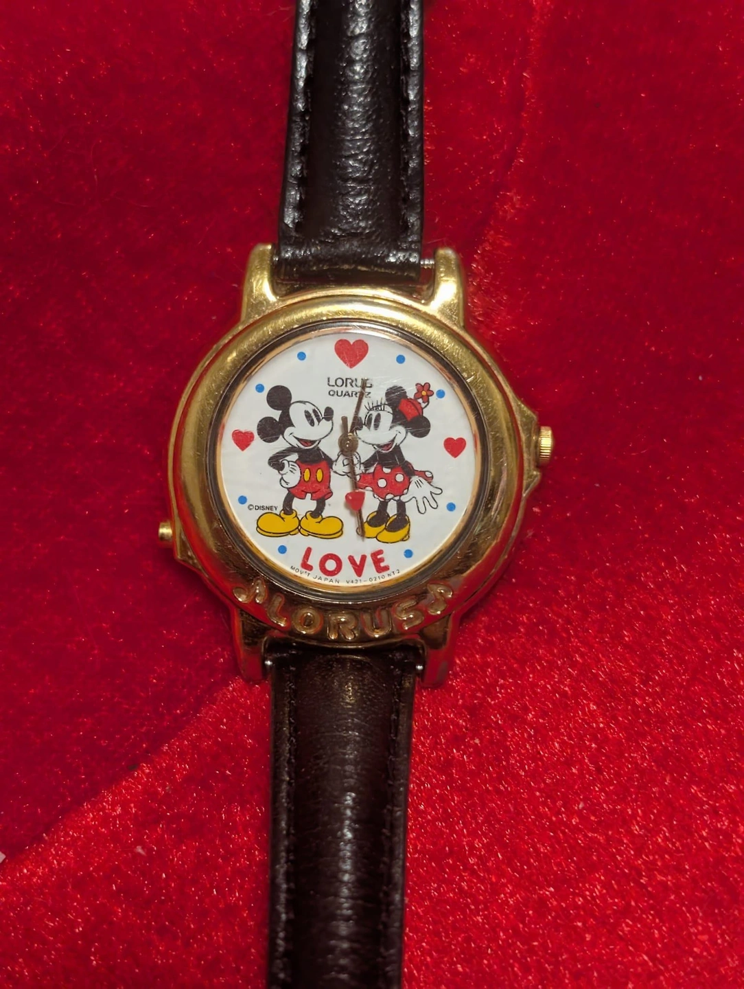 Super cute vintage Mickey and Minnie Mouse watch by Lorus! This is the special "LOVE" edition that actually plays music when you press the button on the side.