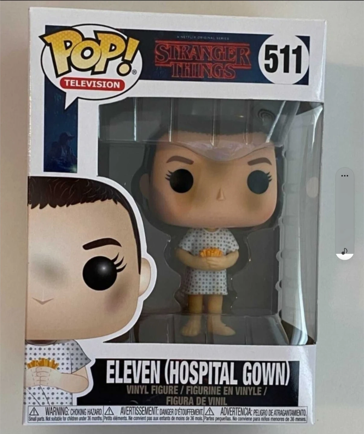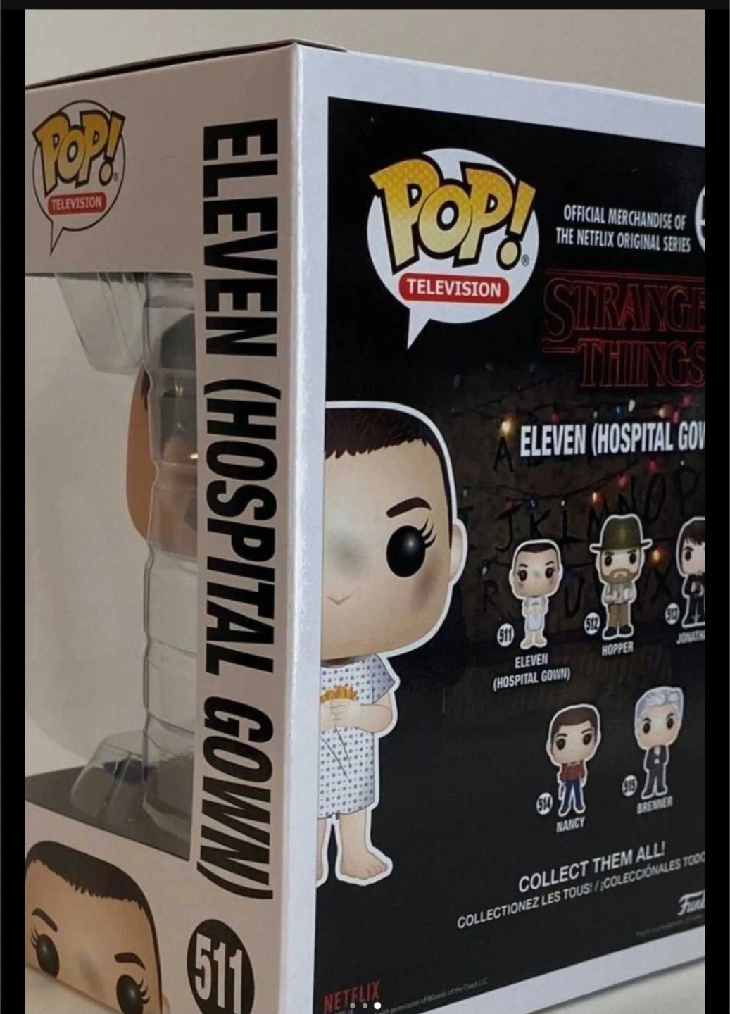 Selling a Funko Pop! figure of Eleven from Stranger Things, specifically the Hospital Gown version. This is figure #511 in the series. Collect them all!