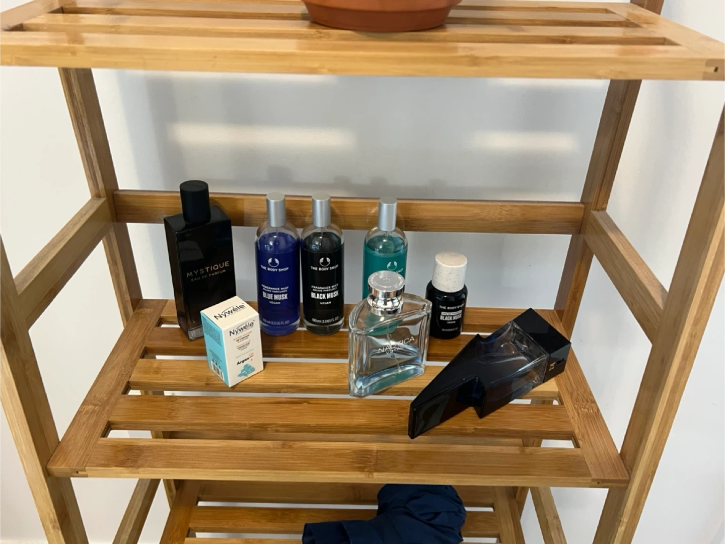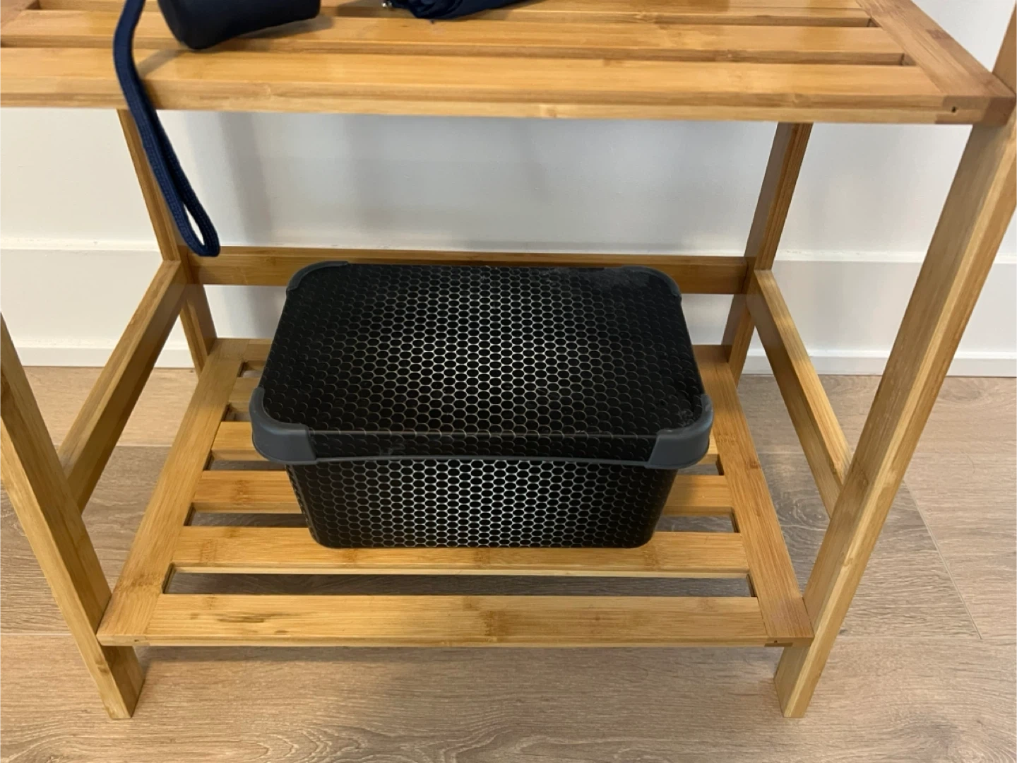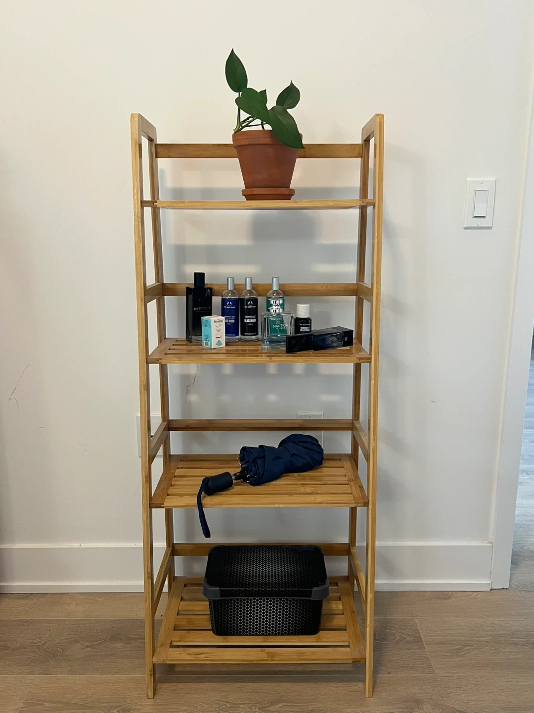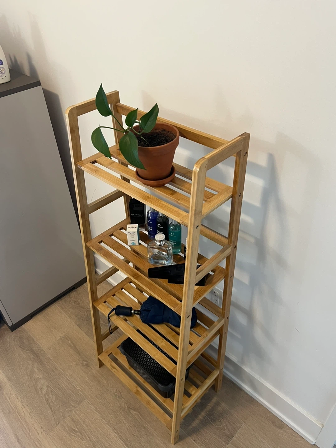 Selling a bamboo shelf rack, perfect for adding some extra storage space to your home! It's in great condition and ready to use. Great for organizing toiletries, plants, or anything else you need to keep tidy