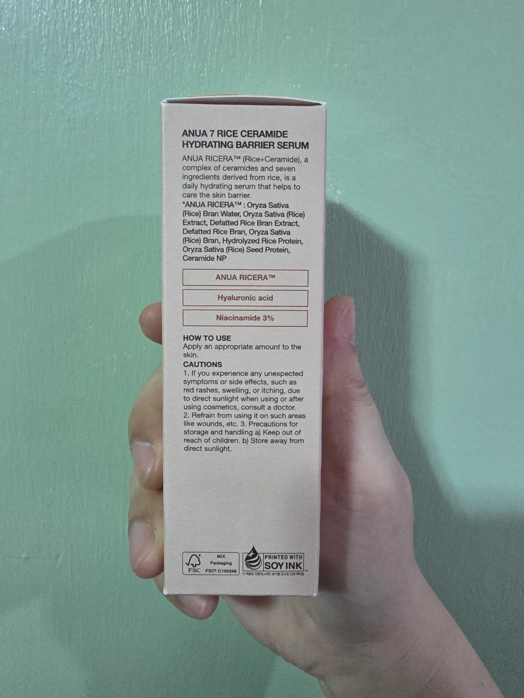 NEW Anua 7+ Rice Ceramide Hydrating Barrier Serum! It's a serum that helps to care for the skin barrier. It contains rice ceramide and a complex of ceramides and seven ingredients derived from rice. It also contains hyaluronic acid and niacinamide 3%. Expires June/6/2027.