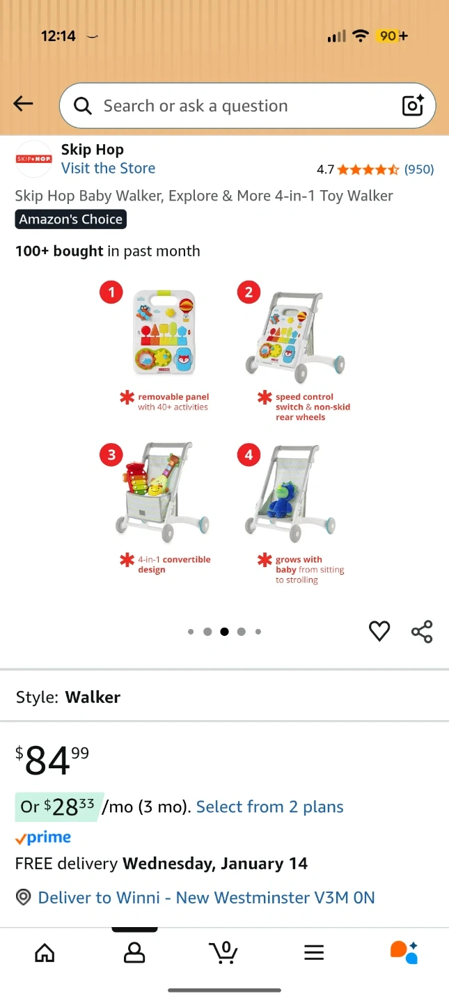 Selling a Skip Hop Baby Walker, Explore & More 4-in-1 Toy Walker! This walker is packed with 40-plus play features, songs, sounds, lights and more. It's a convertible activity walker that helps little ones learn and grow with four engaging ways to play: seated, cruising, shopping cart and stroller. It helps encourage balance & mobility, sensory development, fine motor skills, hand-eye coordination, cause & effect, simple counting, pretend play. Originally bought for $84.99