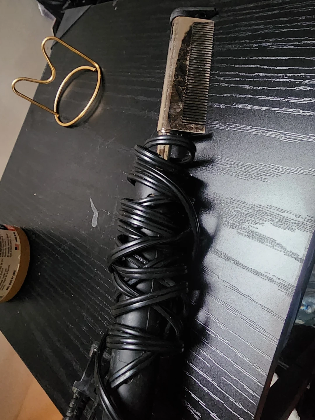 Selling a used Pro-Tools EHC 0390 hot comb. It has settings for low, medium, and high. Adjustable using the dial on the sides, which rotates the dial visible on the front of the handle. Heats up quickly. Flexible protective black rubber topper on comb to minimize burns during use. Some signs of use are visible. Works like new.
