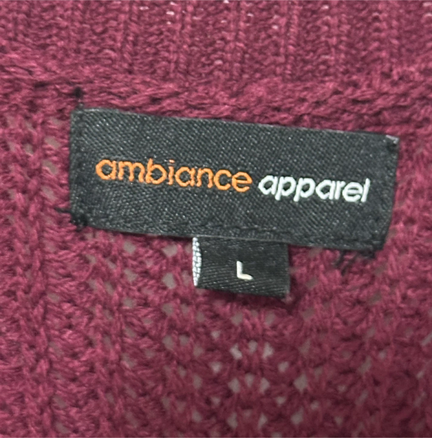 Cozy burgundy knit sweater from Ambiance Apparel in size L. It's made of 55% cotton and 45% acrylic. Perfect for layering or wearing on its own! Never worn